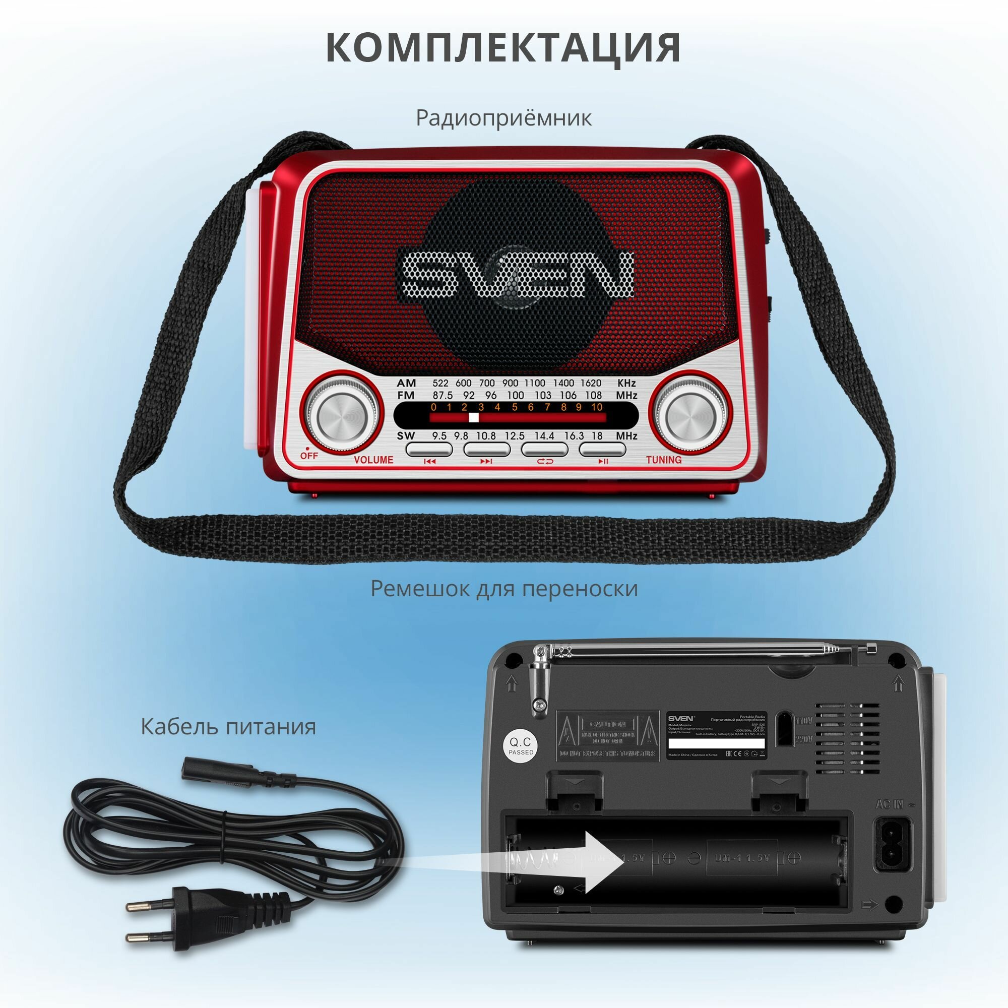 Радиоприемник SVEN SRP-525, красный, мощность 3 Вт (RMS), FM/AM/SW, USB