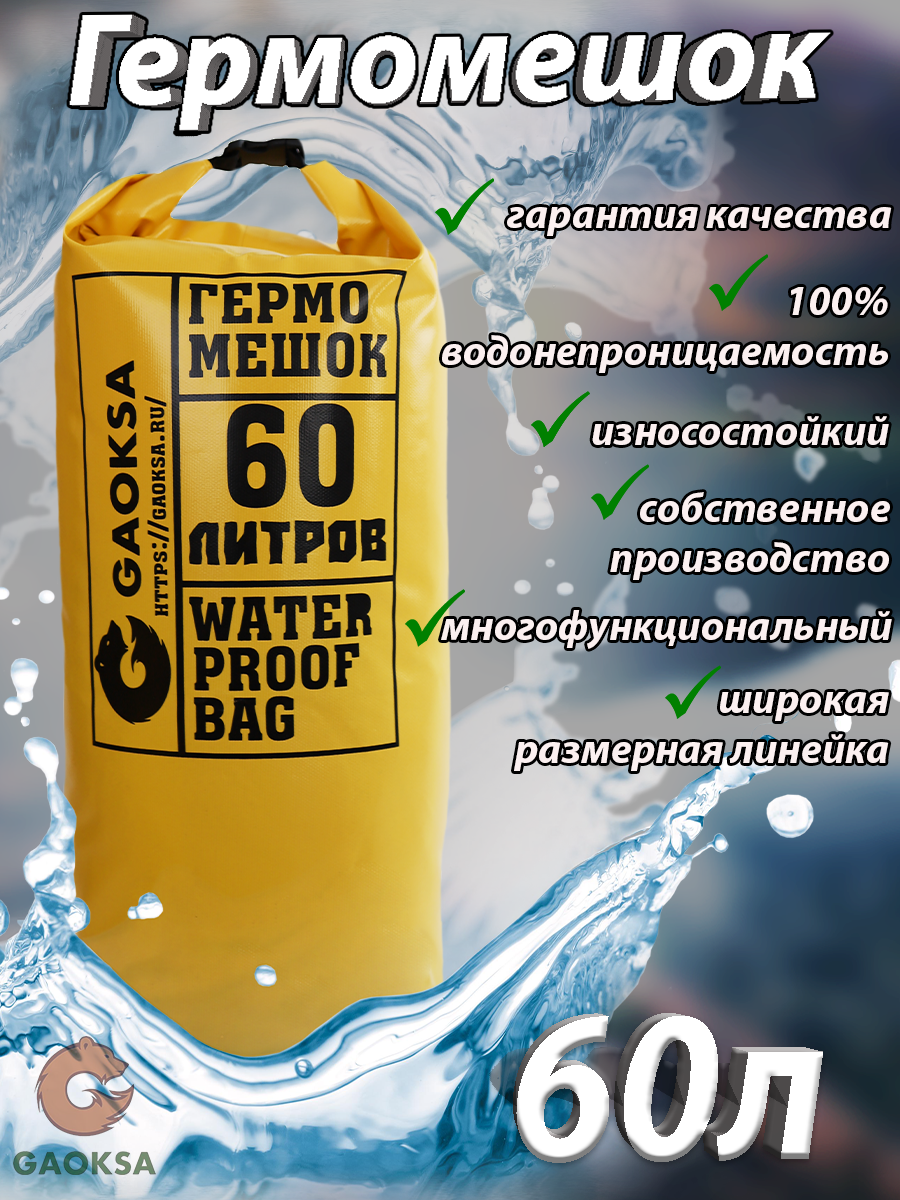 Купить Водонепроницаемый туристический гермомешок пвх GAOKSA, прочная гермосумка 60 л, желтый драйбег, охота и рыбалка
