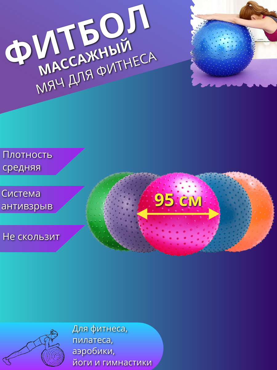 Массажный фитбол, гимнастический мяч для фитнеса йоги пилатеса, надувной мяч 95см. Цвет ассорти интересное: