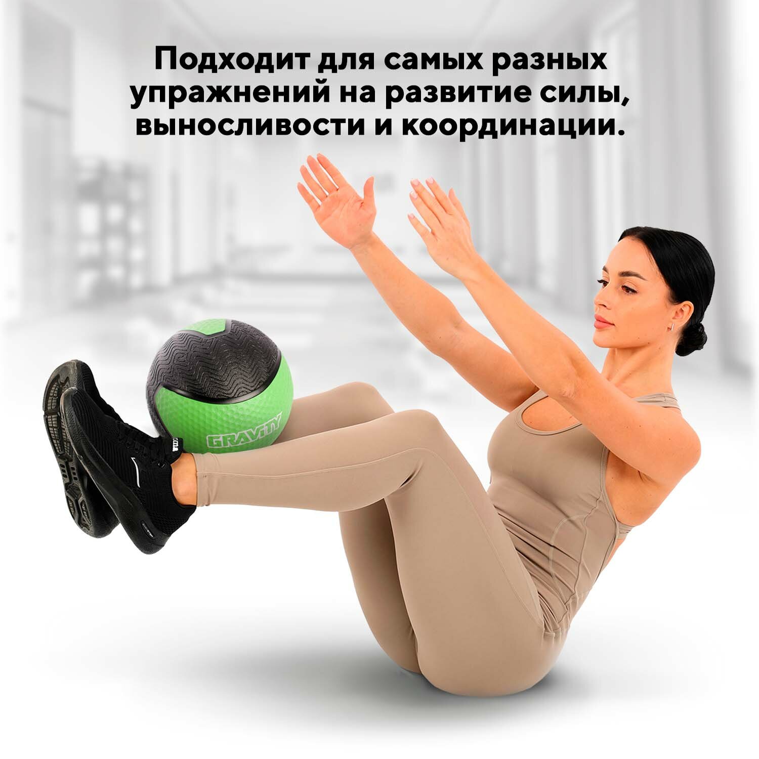 Резиновый медбол Gravity, 3кг, светло-зеленый интересное: