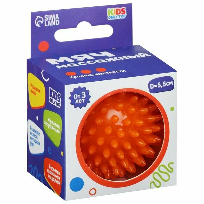 Мяч массажный ONLYTOP Ёжик, d 5,5 см, цвет оранжевый интересное: