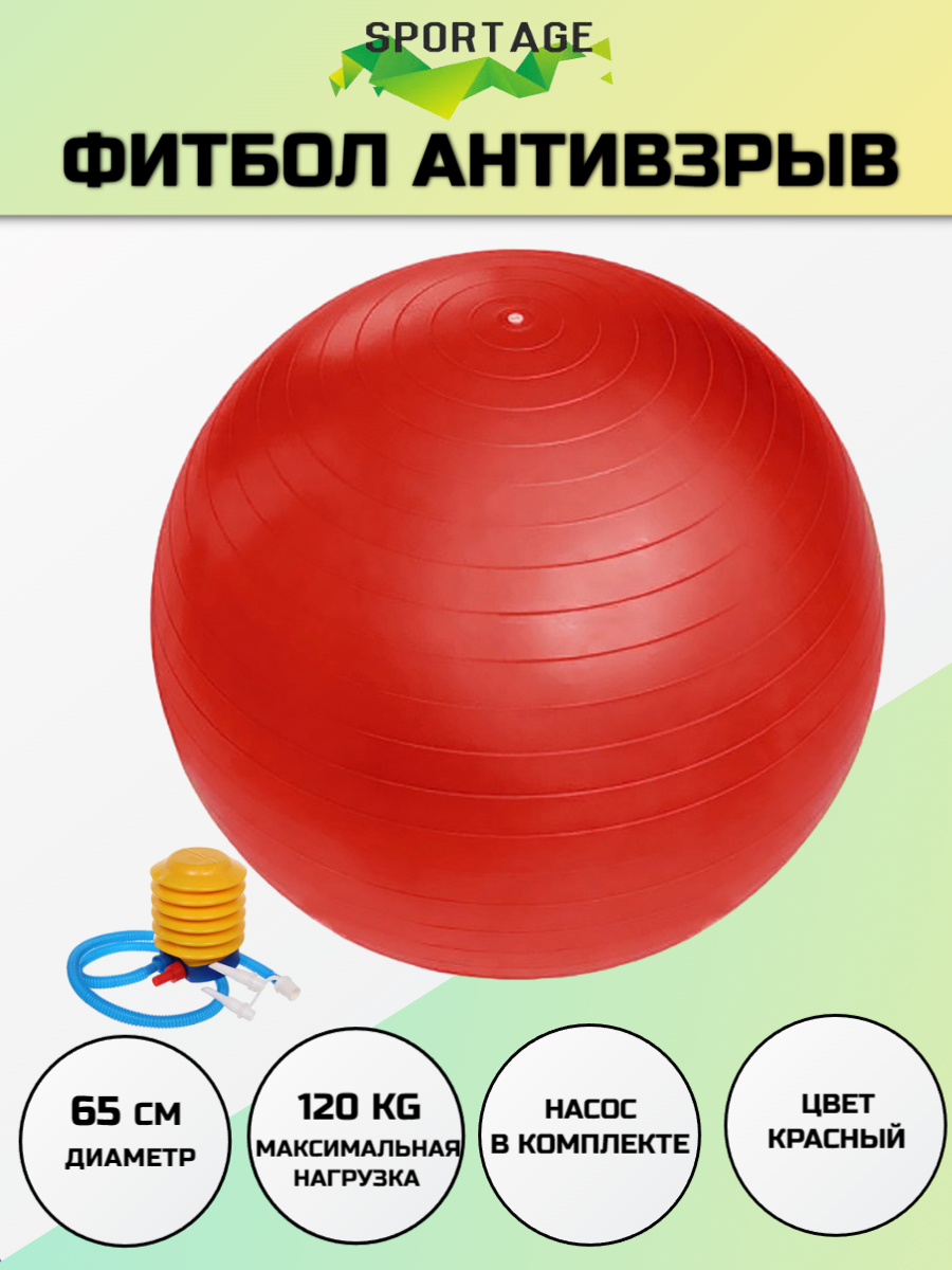 Фитбол, мяч для фитнеса Sportage 65 см 800гр с насосом, красный интересное: