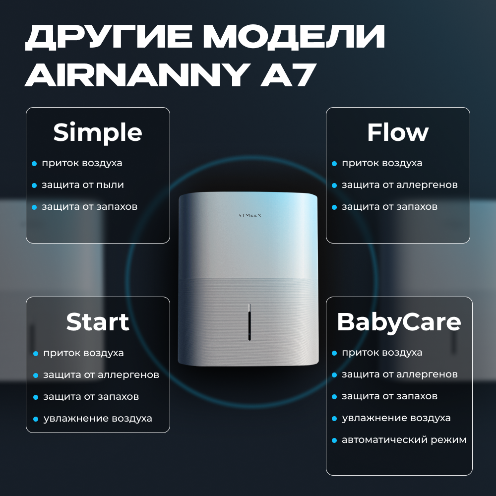 Комплекс приточный ATMEEX AIRNANNY A7 BabyCare для очистки воздуха (Очистка + Увлажнение + Подогрев + Датчик CO2) встроенный увлажнитель с УФ-лампой