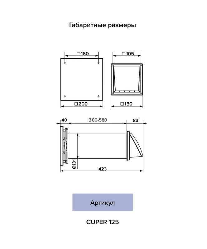 | Габариты (ШхВхД) | 200x200x423 мм |