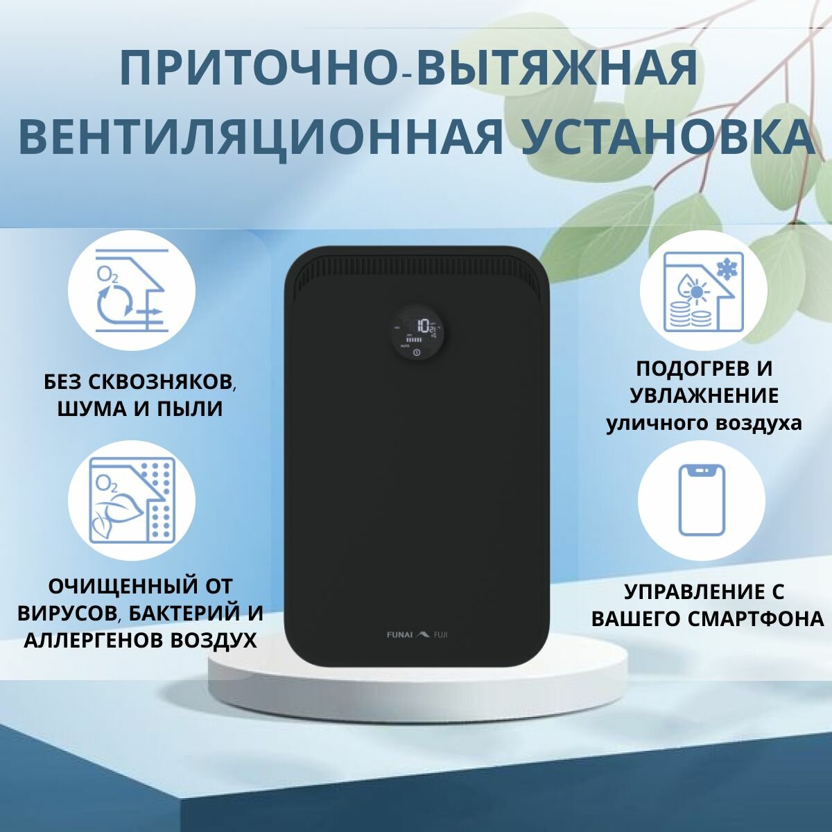 Приточно-вытяжная установка FUNAI FUJI-Wi-Fi c Фильтром H12 и Ионизатором Черный интересное: