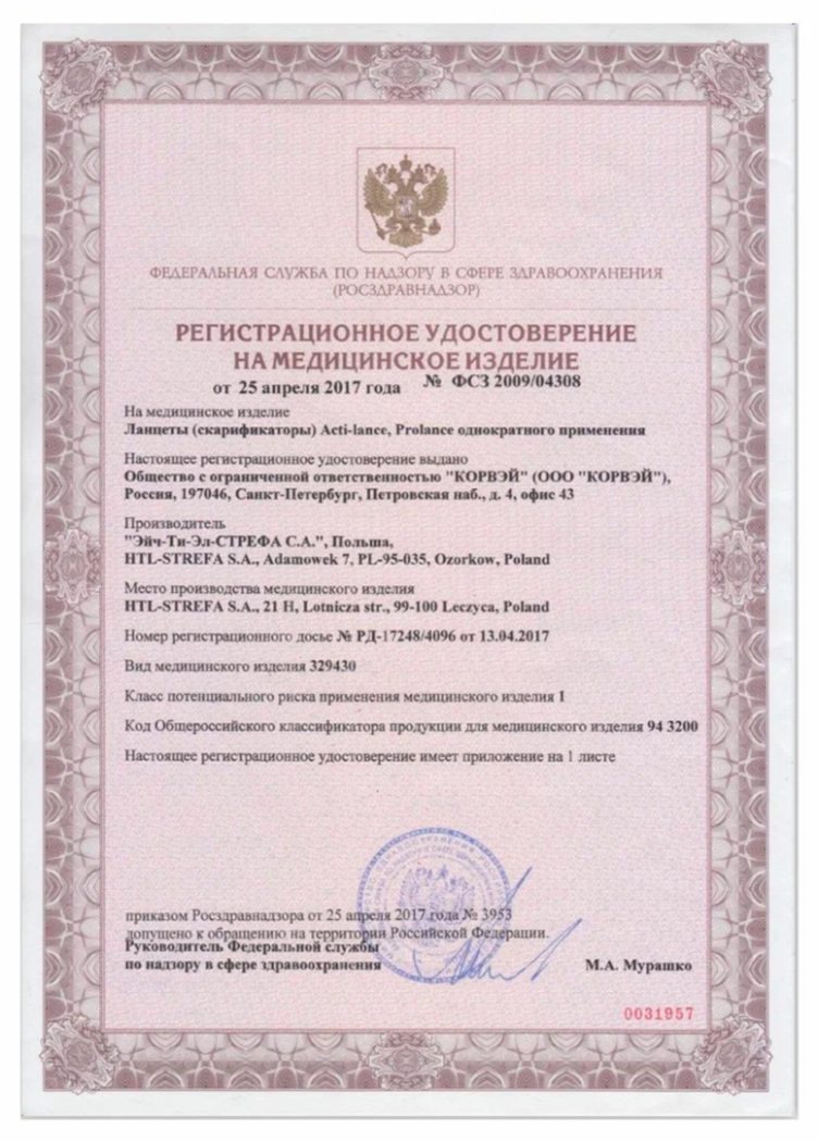 | Тип ланцета | автоматический |