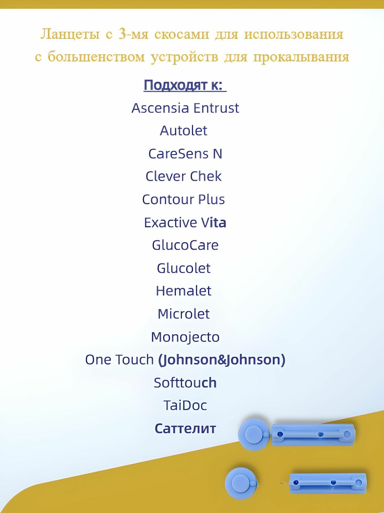 Ниже Вы можете прочитать отзывы на Универсальные ланцеты для глюкометра прокалывателя GlucoDR, ознакомится с подробными характеристиками, посмотреть интересные обзоры и фотографии на Универсальные ланцеты для глюкометра прокалывателя GlucoDR.