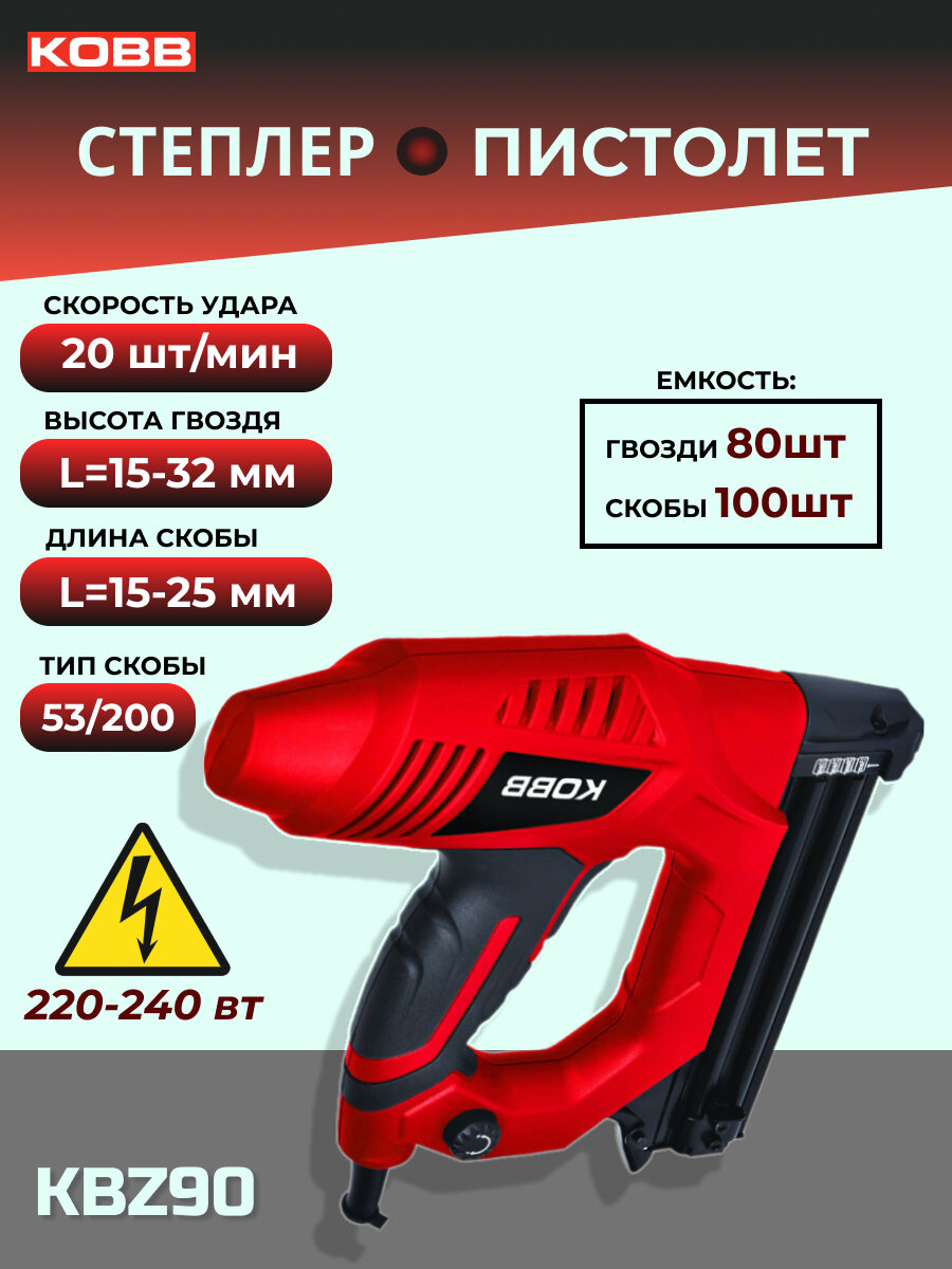 Степлер (15-23мм)профессиональный гвоздезабивной (15-32мм)KOBB + 3000 шт запасные скобы и гвозди/KBZ90/ интересное: