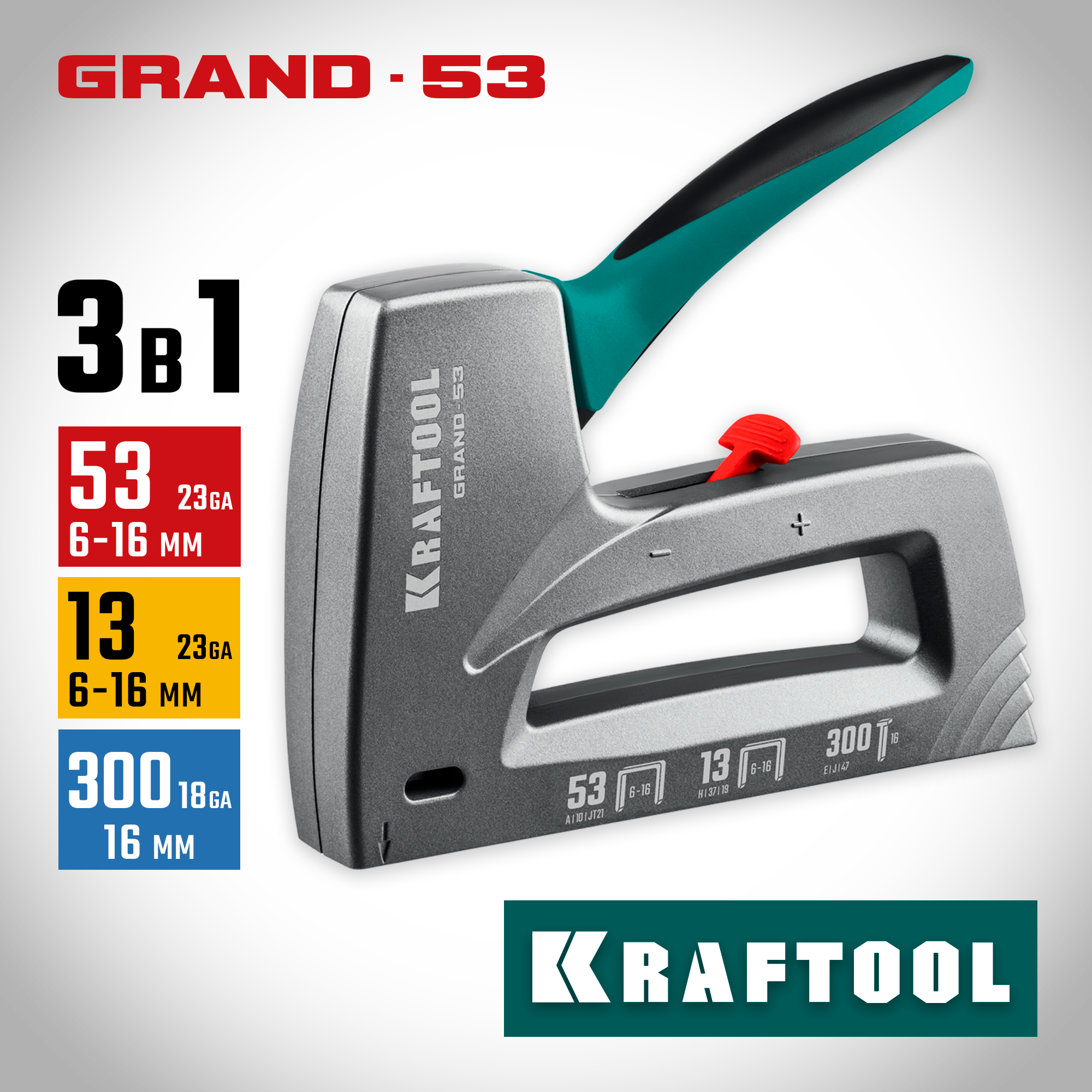 KRAFTOOL GRAND-53, тип 53 (A/10/JT21) 23GA (6 - 16 мм)/13/300, алюминиевый рессорный степлер (3193)