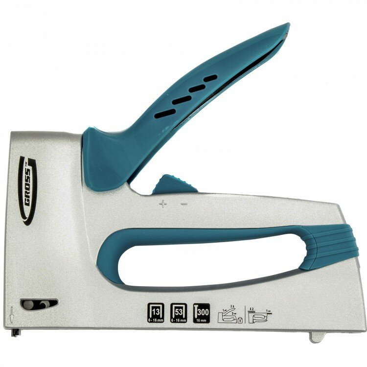 Степлер "GROSS", алюм-й корпус, регул. удара, тип скоб13,53,300 / 6-16мм интересное: