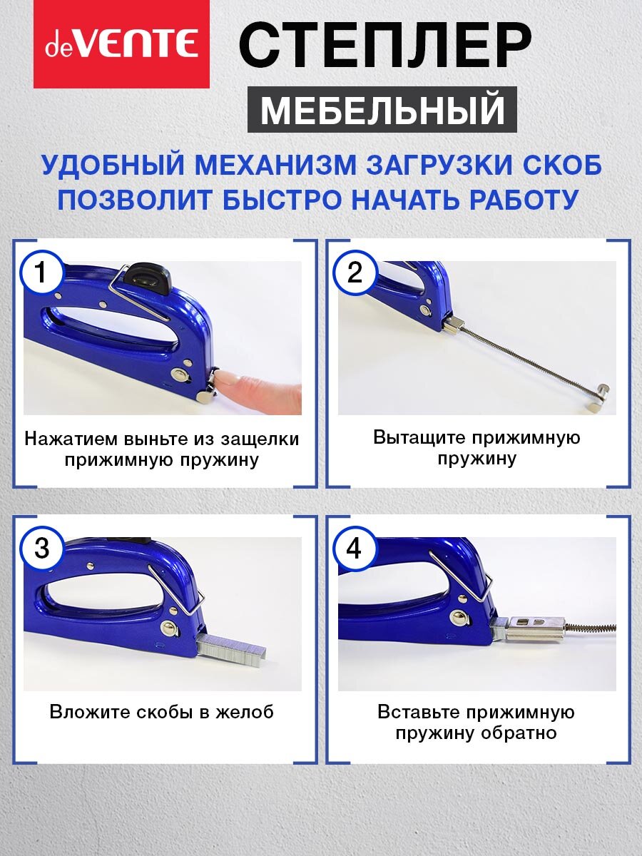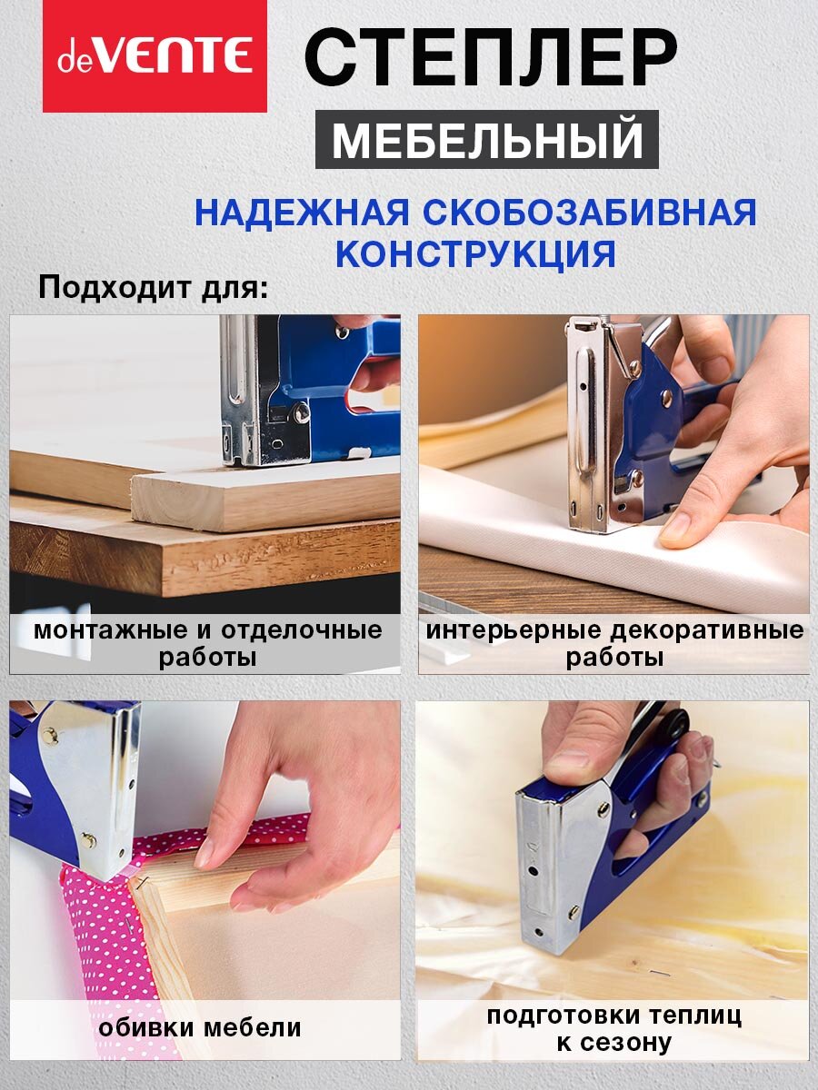Степлер мебельный "deVENTE" металлический, для скоб 53/6, 53/8, в картонной коробке интересное: