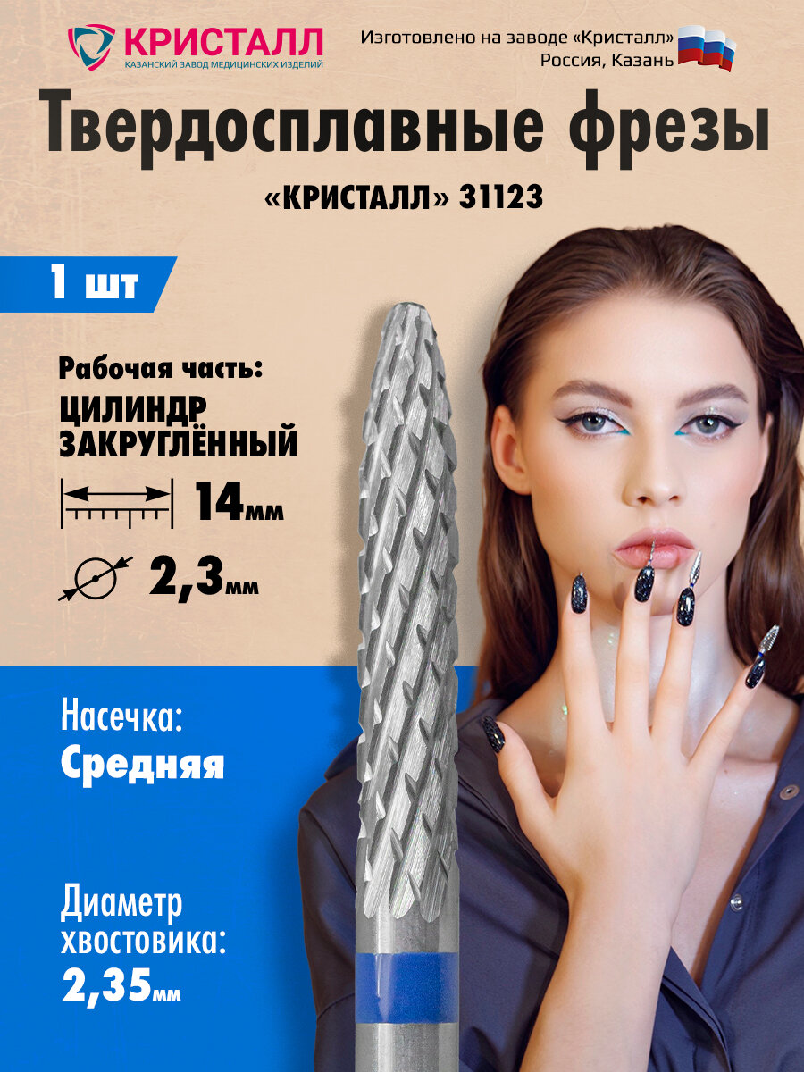 Кристалл, Твердосплавная фреза 31123 (цилиндр закругленный), средняя, D2,3, L14 интересное: