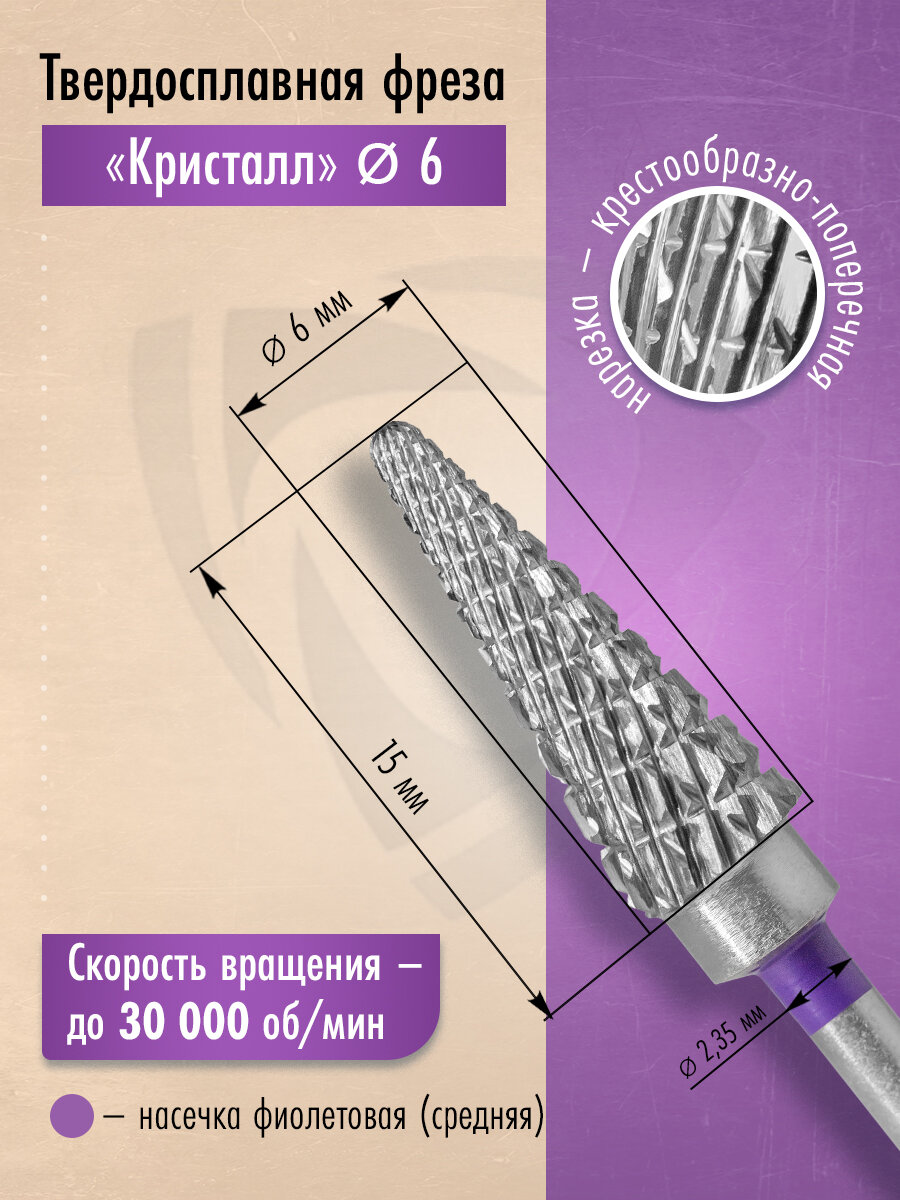 Кристалл, Твердосплавная фреза 31160 (конус), средняя, D6, L15