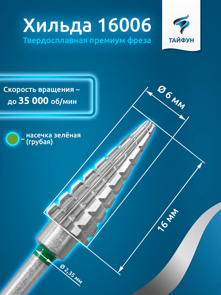 Тайфун, Твердосплавная фреза Хильда 16006 (конус), крупная, D6, L16 интересное:
