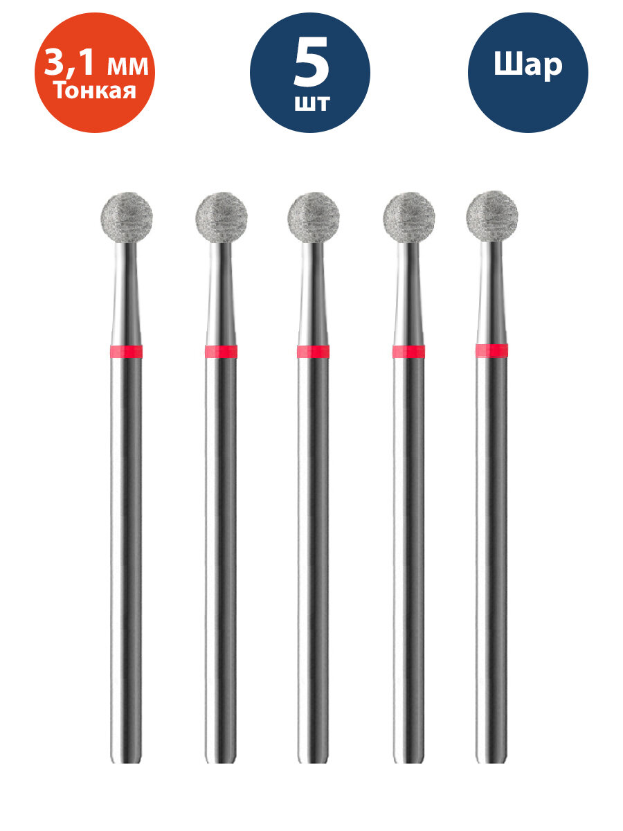 Купить Владмива Фреза для маникюра и педикюра алмазная 806 104 001 514 031 Тонкая красная шар для кутикулы (5 шт)