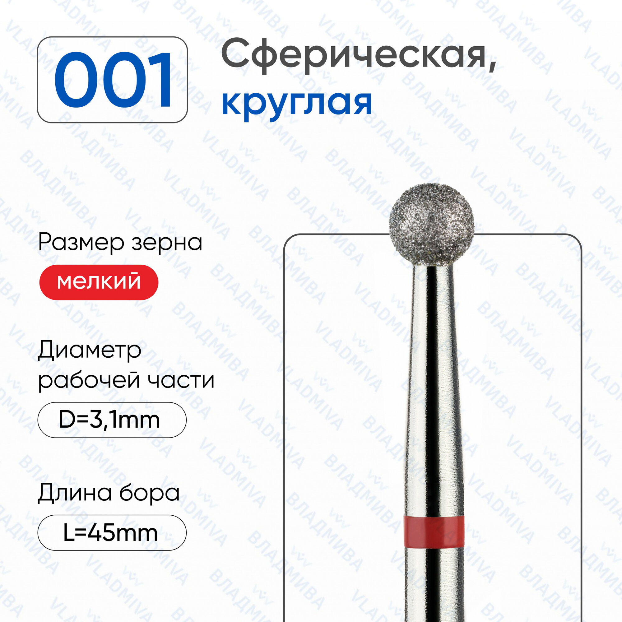 Купить Владмива Фреза для маникюра и педикюра алмазная 806 104 001 514 031 Тонкая красная шар для кутикулы (10 шт)