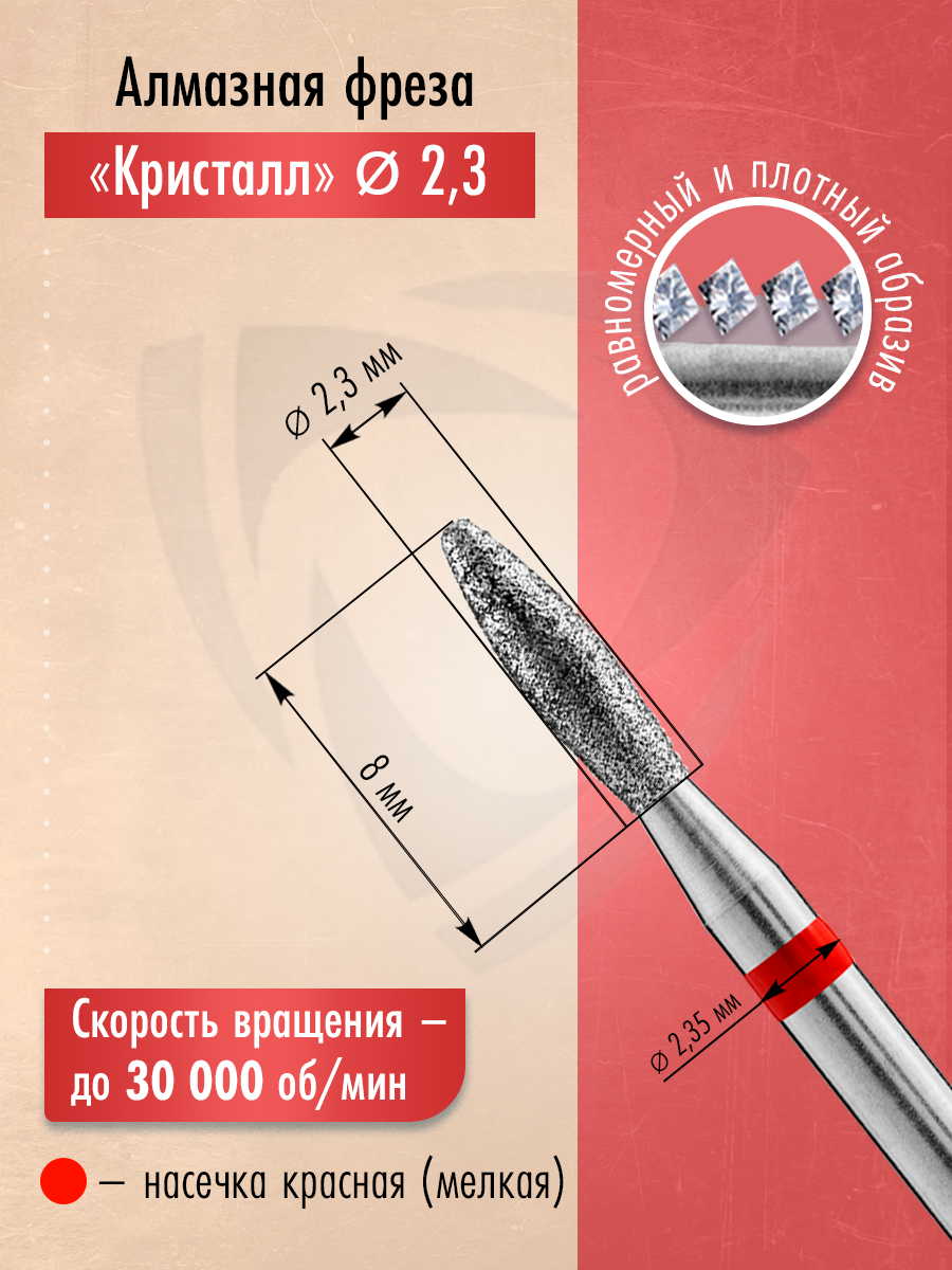 Купить Кристалл, Алмазная фреза (пламя закругл.), D2,3, L080, мелкая, 856.104.263.080.023, 5 шт
