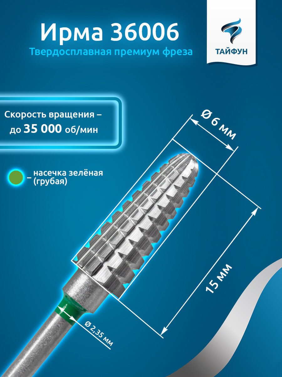 Купить Тайфун, Твердосплавная фреза Ирма 36006 (конус закругленный), крупная, D6, L15