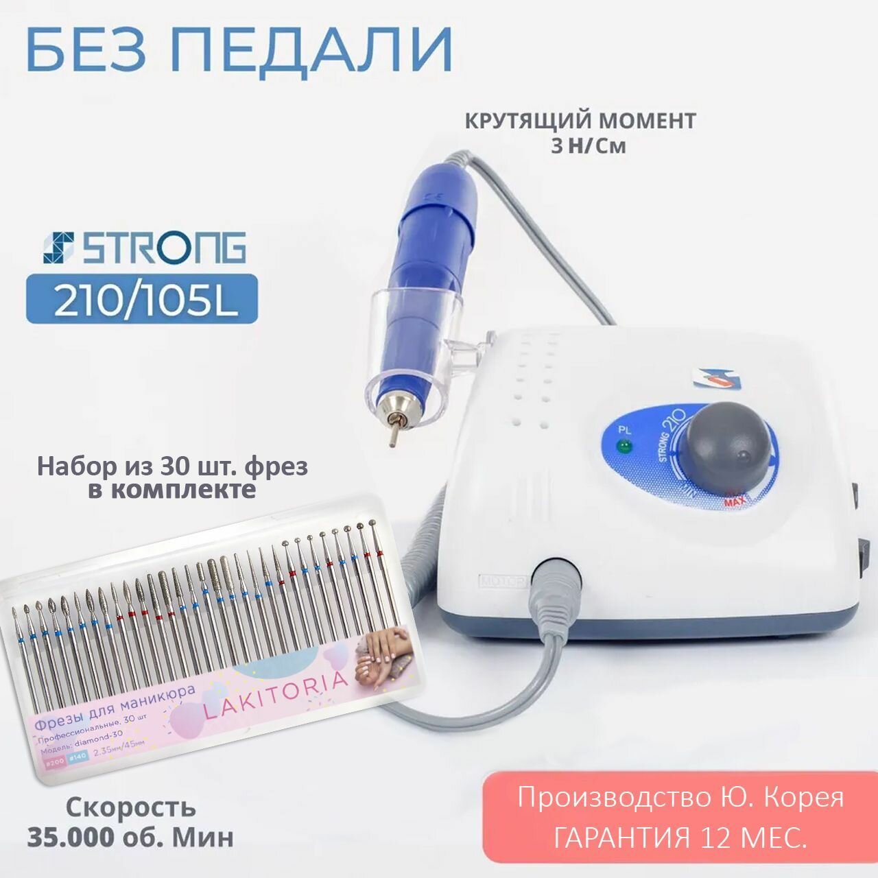 Купить Аппарат для маникюра и педикюра Strong 210/105L и набор фрез для маникюра 30шт