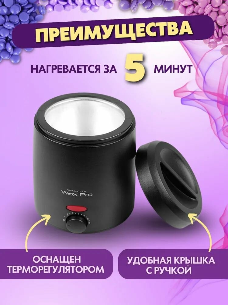 Воскоплав Luazon LVPL-07, баночный, 100 Вт, 400 г, регулировка температуры, 220 В, сиреневый