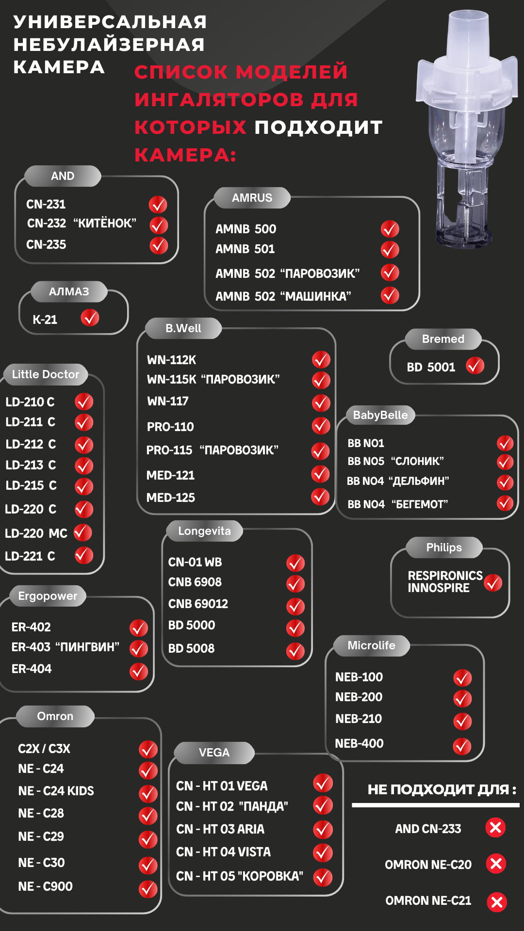 | Подробная комплектация | Универсальная небулайзерная емкость для ингалятора, 1 шт |