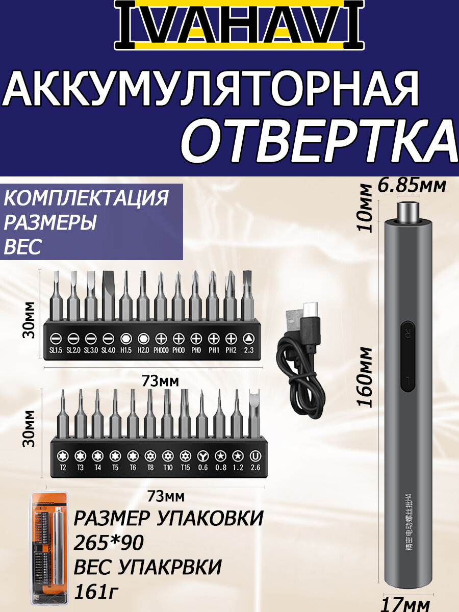 Аккумуляторная отвертка IVAHAVI 350 mAh 24 насадки интересное:
