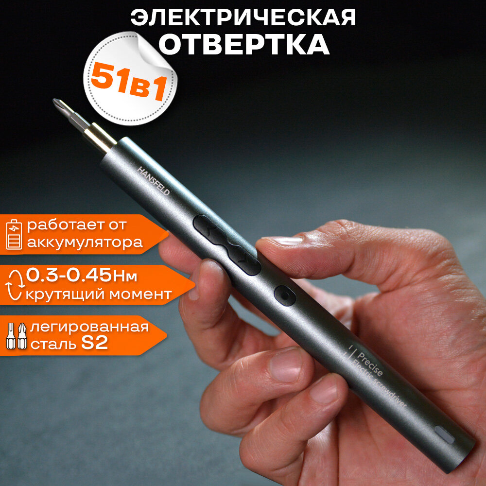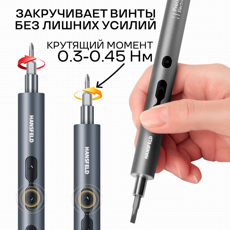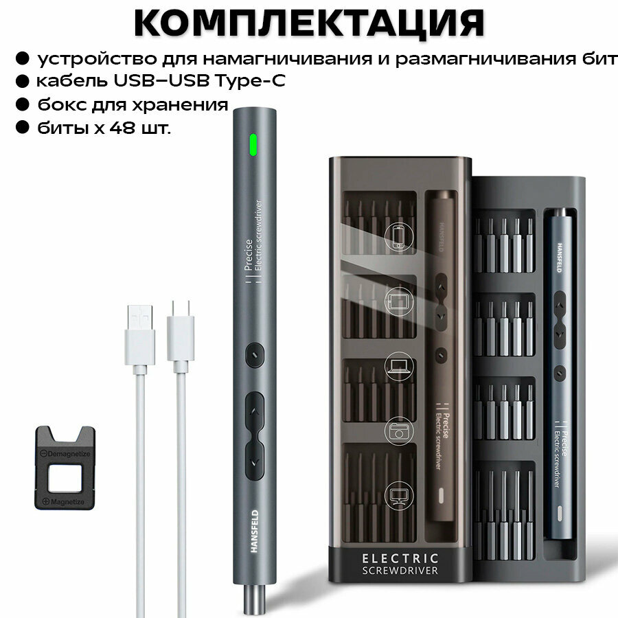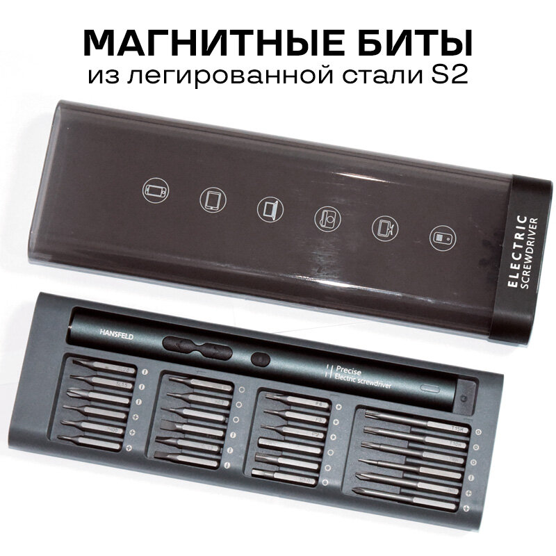 Купить Отвертка аккумуляторная электрическая HANSFELD для очков, телефона iPhone и Android, ноутбука и других точных работ, с 48 битами