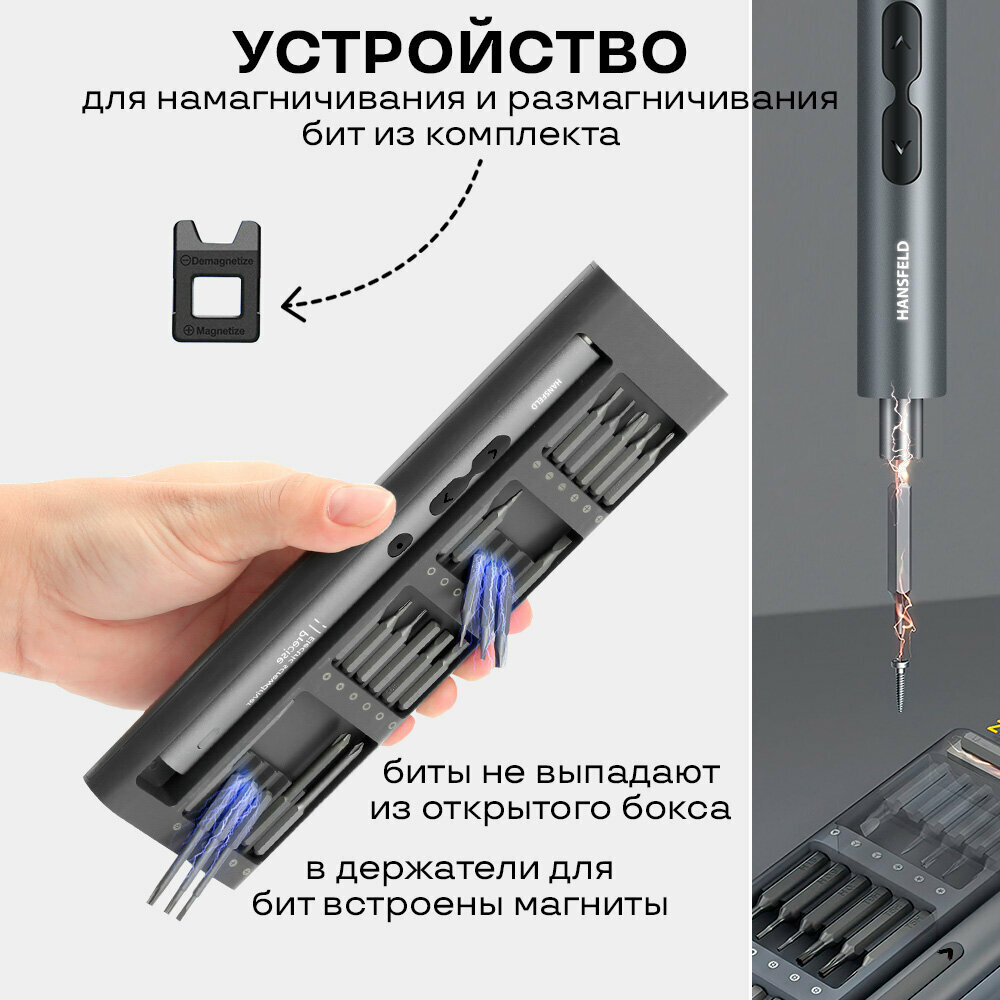 Отвертка аккумуляторная электрическая HANSFELD для очков, телефона iPhone и Android, ноутбука и других точных работ, с 48 битами интересное: