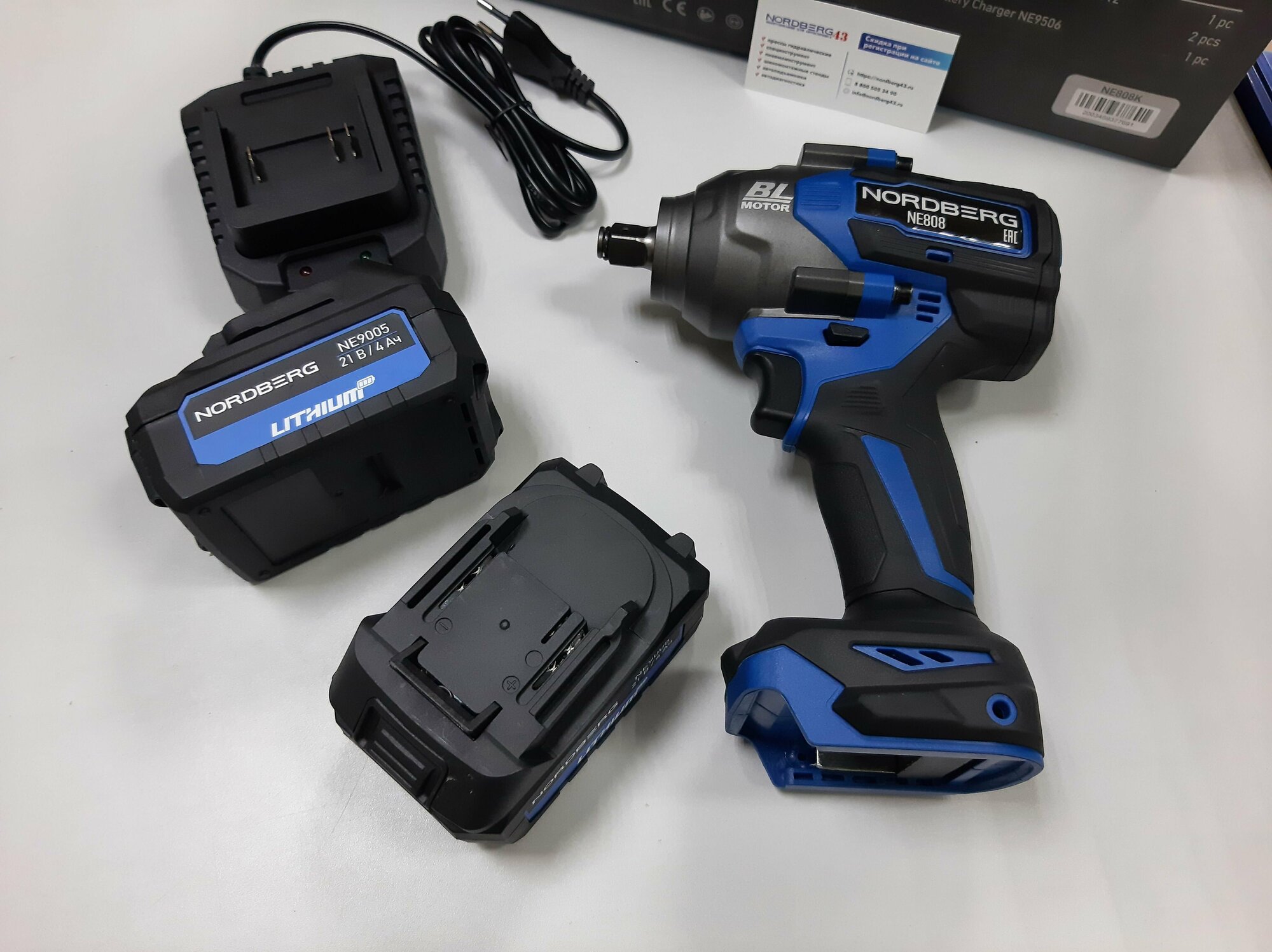 Гайковерт аккумуляторный ударный 1/2" для автосервиса, 1200 НМ, 21 В NORDBERG, в комплекте с двумя аккумуляторами и зарядным устройством интересное: