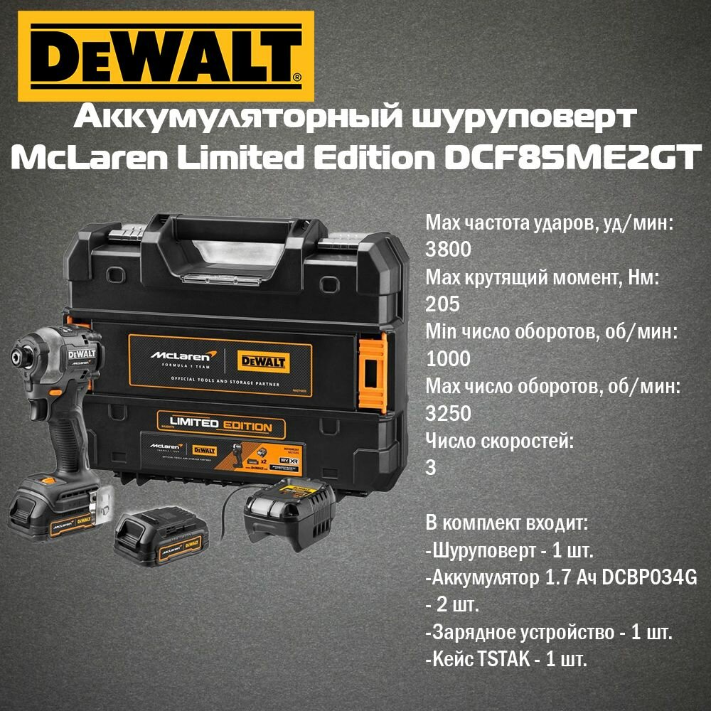 Купить Ударный гайковерт DeWalt DCF85ME2GT, 18 В, 1/4 дюйма, дизайн McLaren