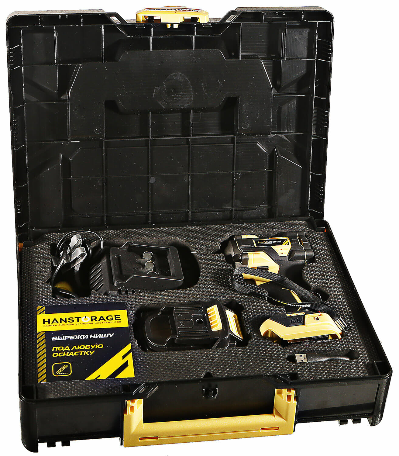 Аккумуляторный ударный гайковерт Hanskonner HCD20420BLC 1BatterySystem (18 В, 420Нм, 1/2, 2 скор, 1x4.0Ач, кейс HS) интересное: