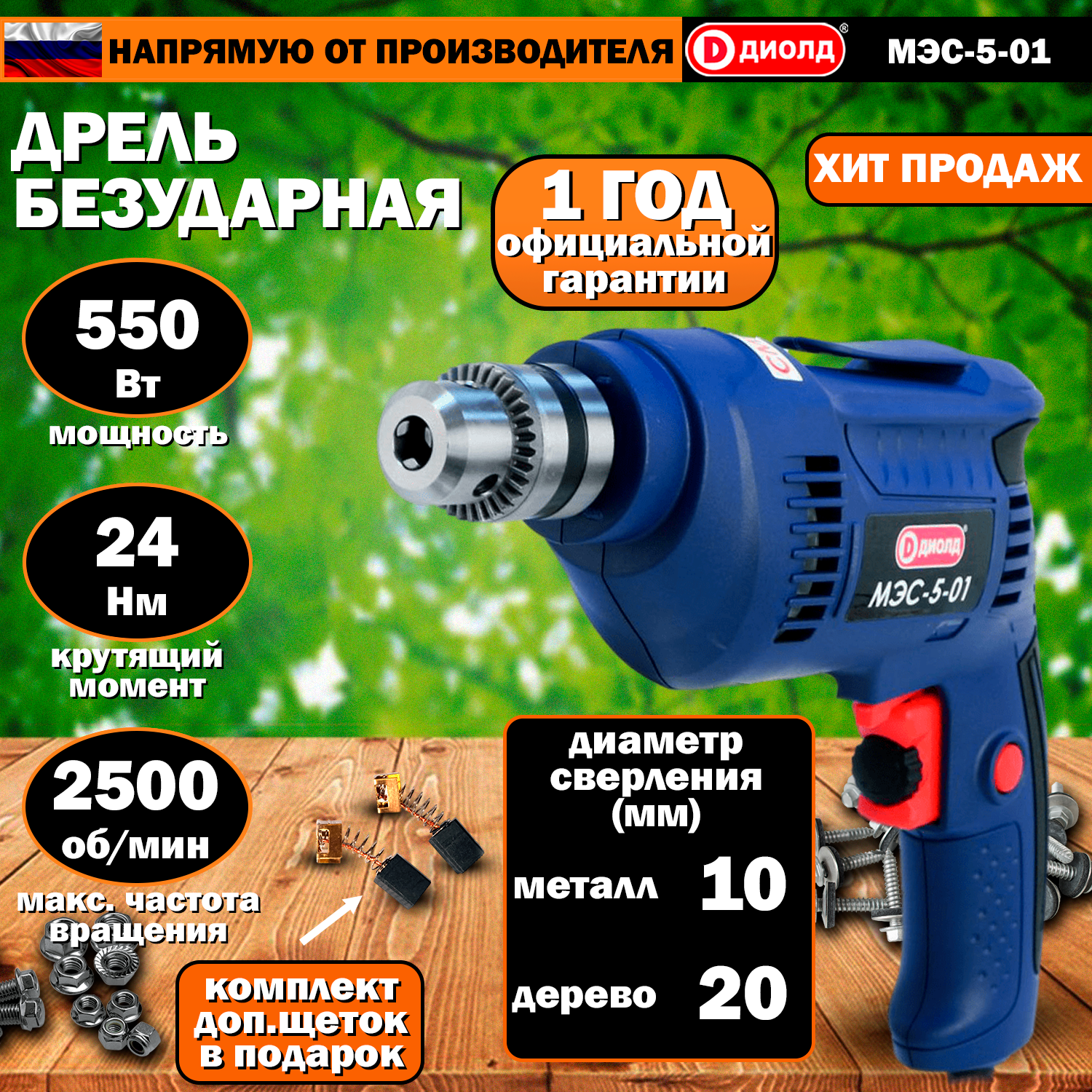 Дрель (шуруповерт) безударная, сетевая, 550 Вт, 24Нм, реверс, 0-2500 об/мин, патрон 1,5-10 мм интересное: