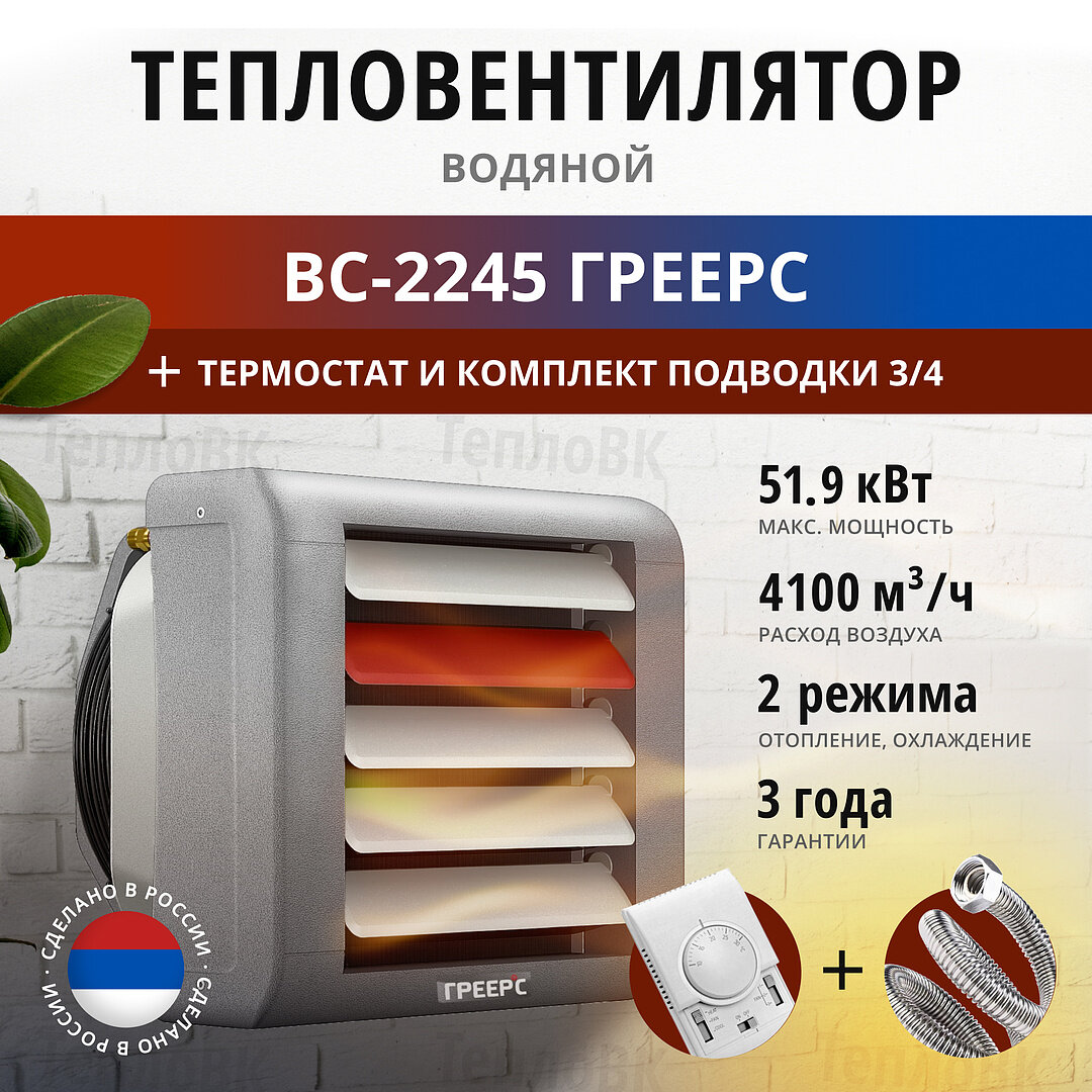 Водяной тепловентилятор ВС-2245 Греерс 51 кВт+термостат+комплект подводки 3/4 интересное: