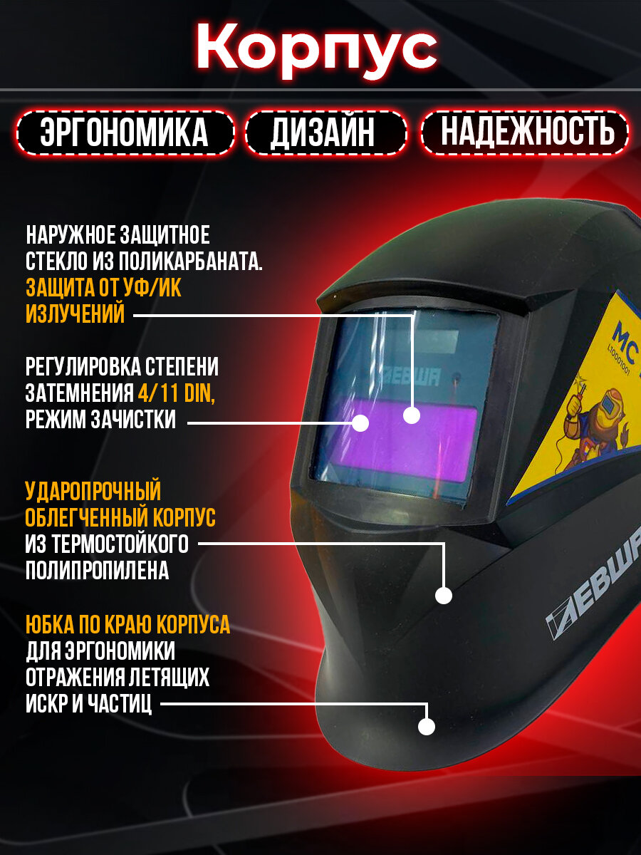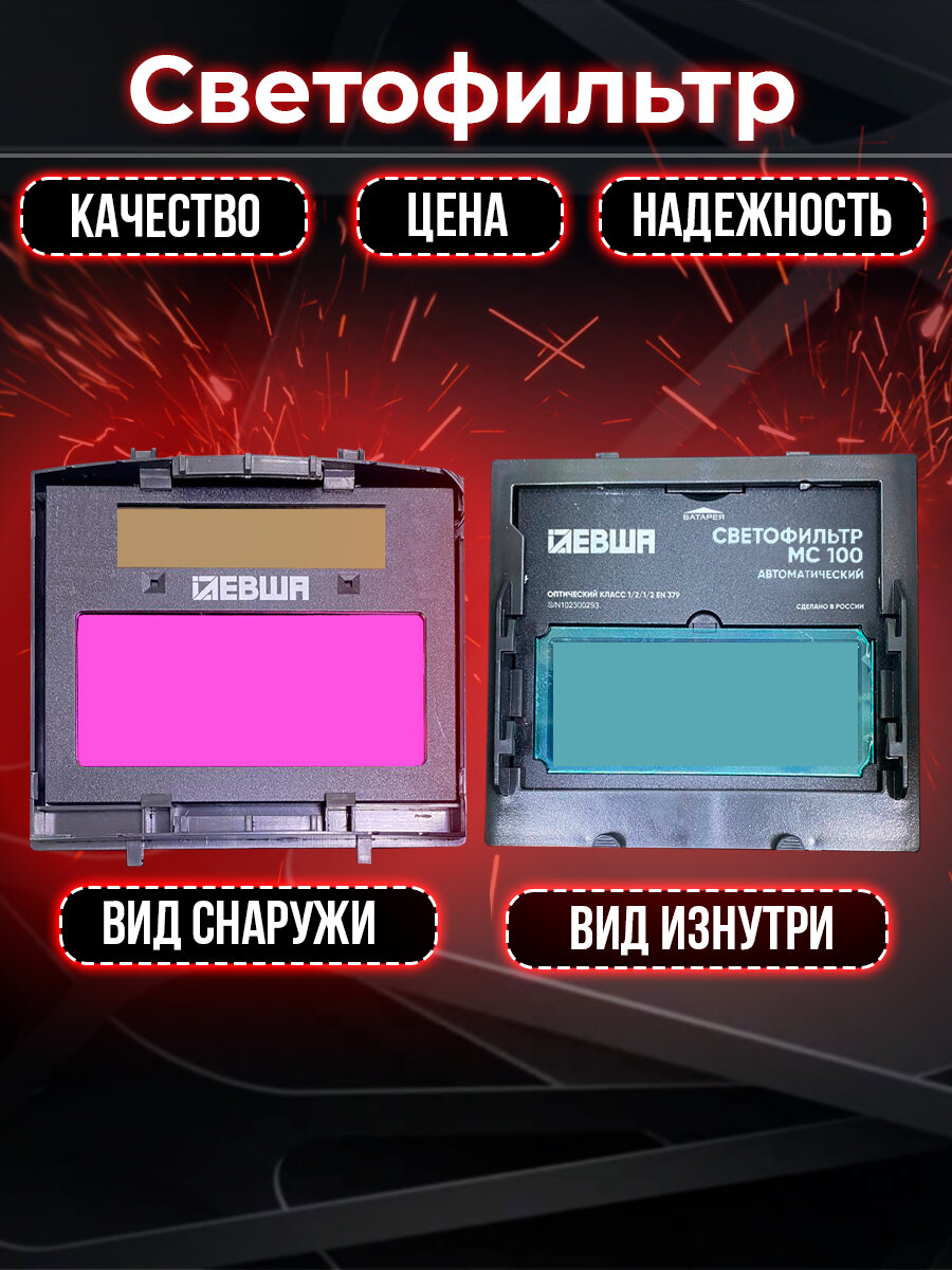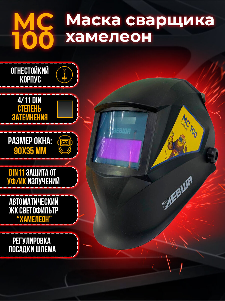 СохранитьМаска сварочная МС100 Хамелеон, окно 90*35мм, DIN 3/11, защита от УФ/ИК: DIN 15, в индивидуальном коробе, левша интересное: