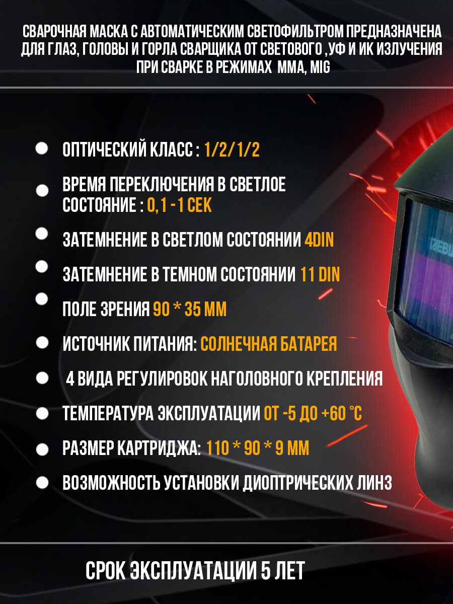 Маска сварочная ... Маска сварщика хамелеон 93х43 черная фильтр DIN 4/9-13 . WELDER PRO Ф5