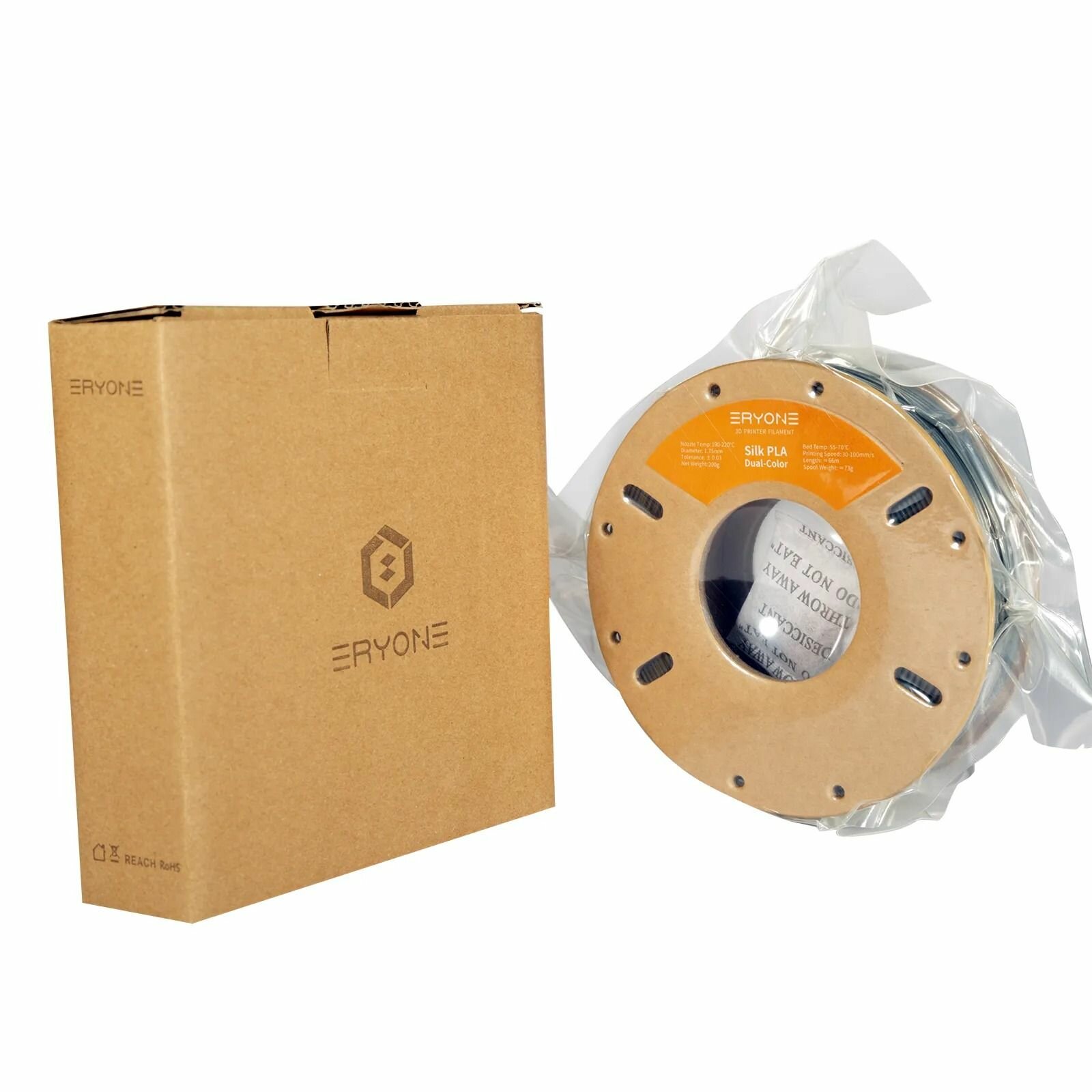 PLA пластик для 3D принтера Silk Dual-Color 1,75 мм 200 гр (Eryone) Золотой - Серебристый