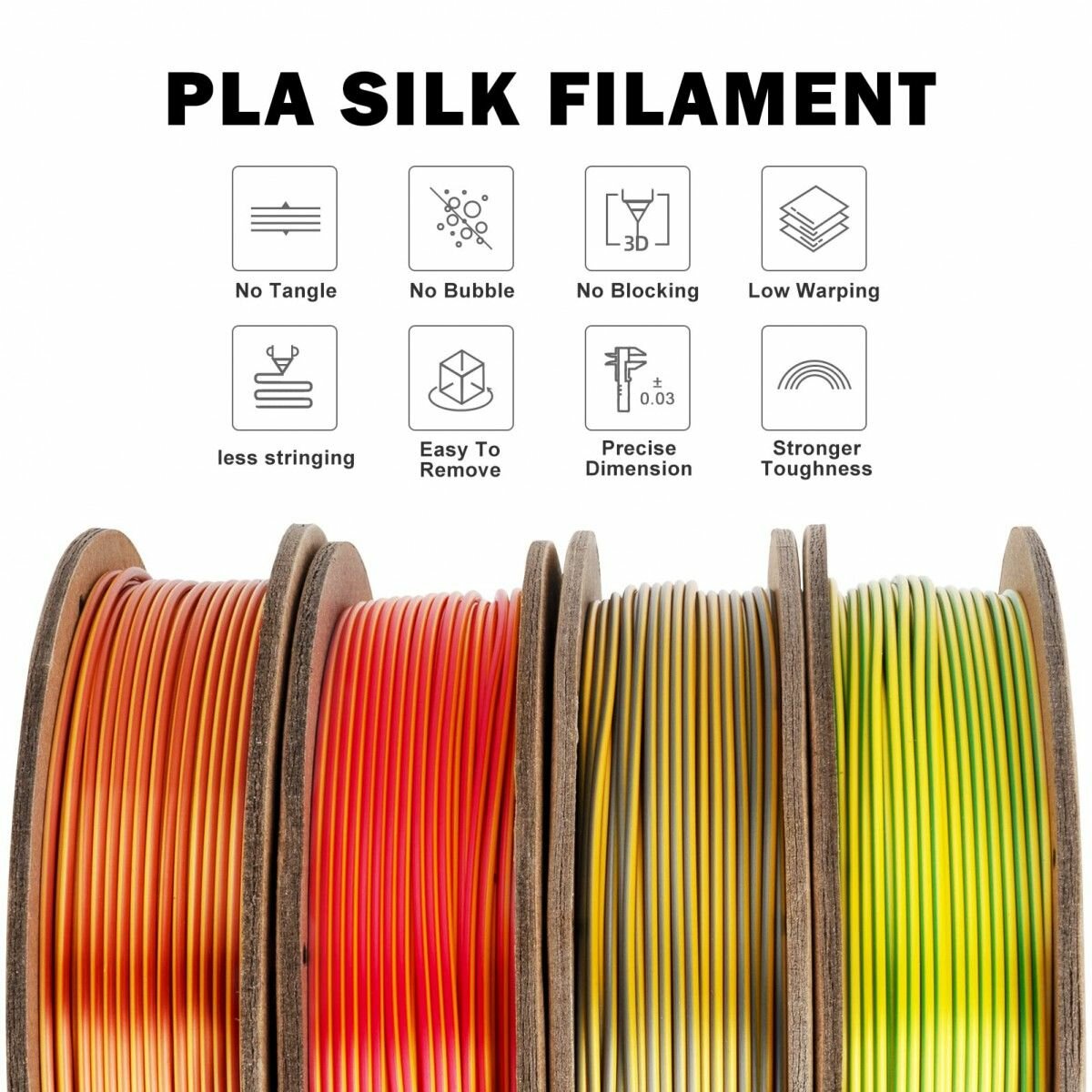 Набор из 4 катушек 0.25 кг пластика для 3D принтера PLA Silk Dual Color 1,75 мм (Eryone) разных цветов - Тип 5