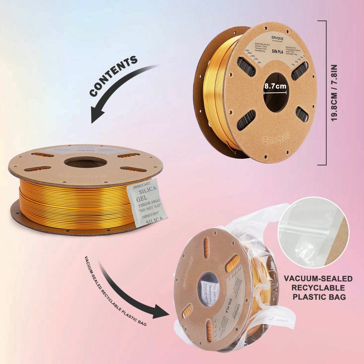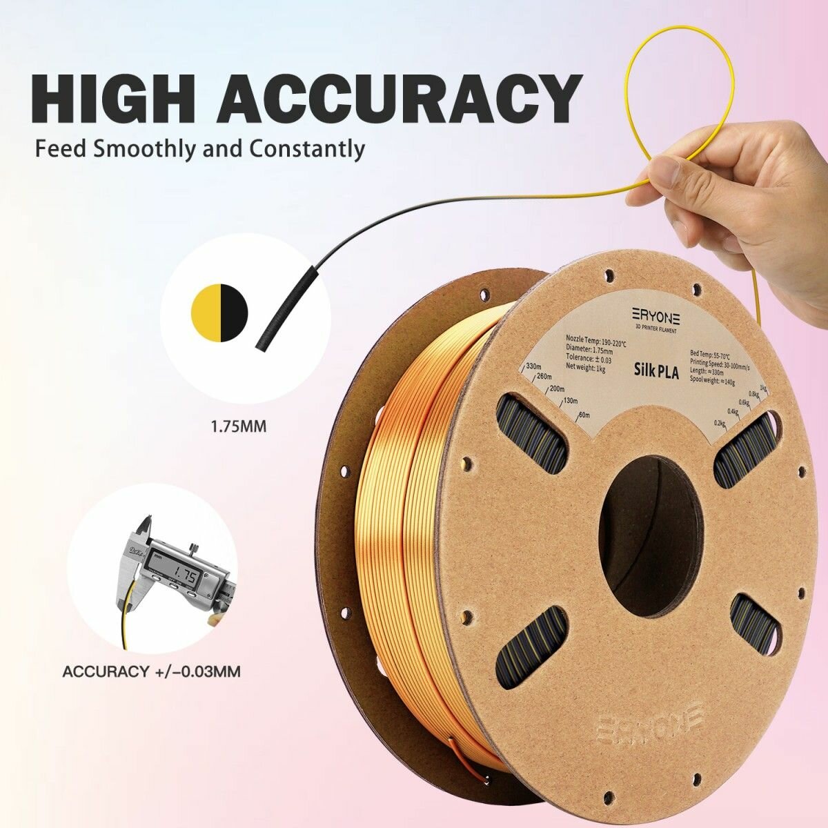 PLA Silk Dual-Color 1,75 мм 1 кг (Eryone) Черный - Темно-золотой интересное:
