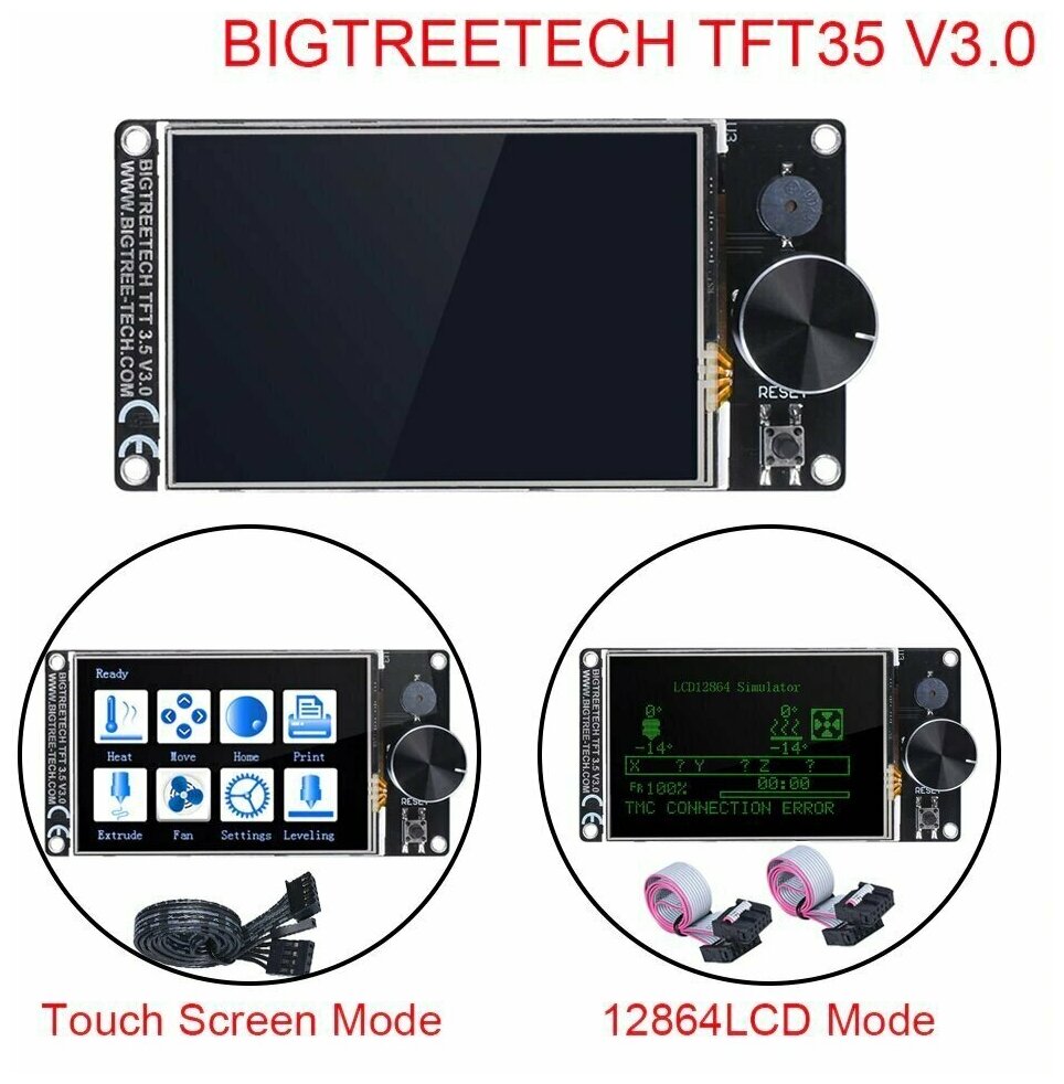 Сенсорный дисплей TFT35 v3.0, 3.5 дюймов, от производителя Bigtreetech. Дисплей для 3D принтера TFT35 v3.0 с энкодером права. интересное: