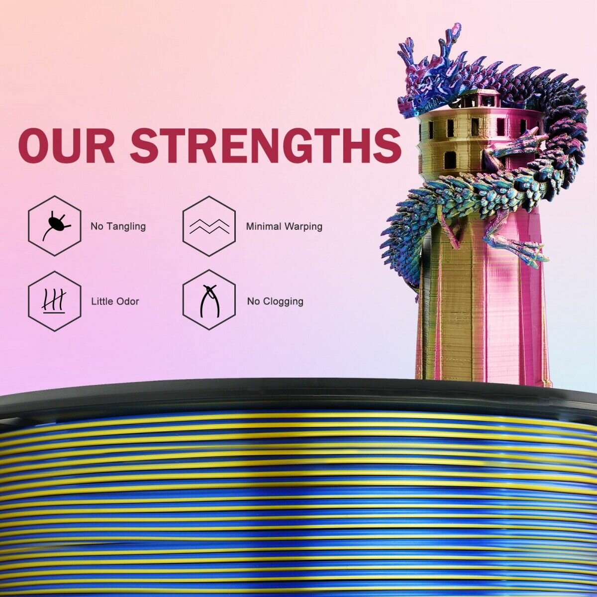 PLA Silk Tri-Color 1,75 мм 1 кг (Eryone) Красный - Желтый - Синий интересное: