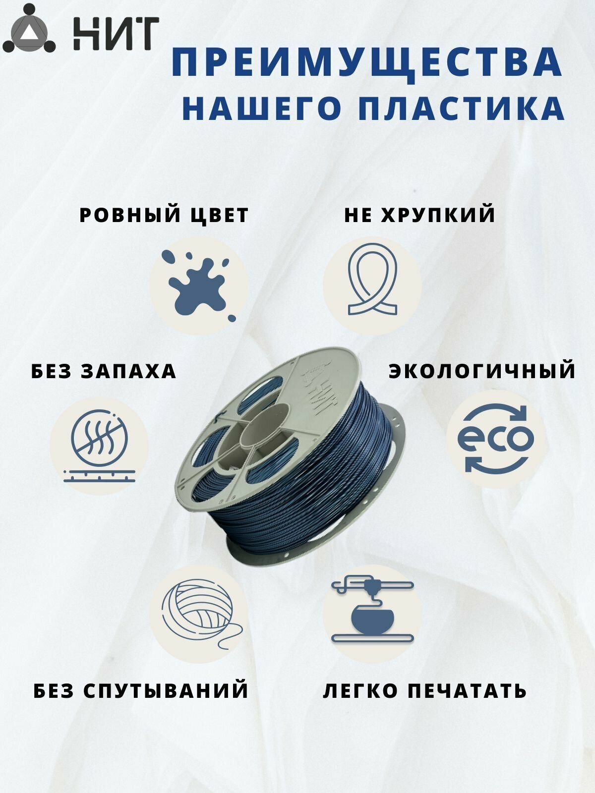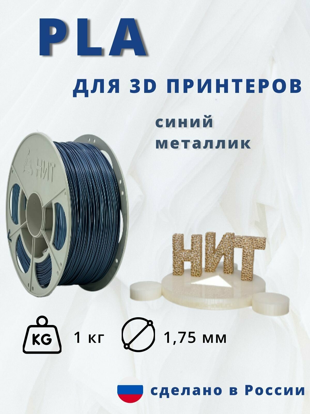 Пластик для 3D печати "НИТ", PLA синий металлик 1 кг. интересное: