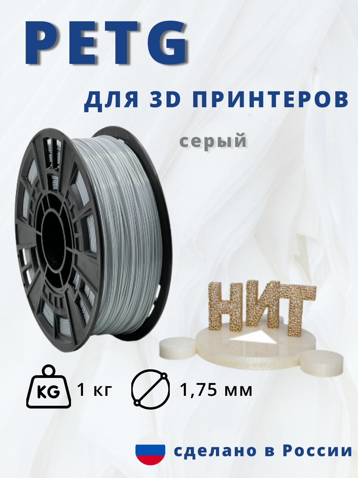 Пластик для 3D печати "НИТ", Petg светло-серый 1 кг. интересное: