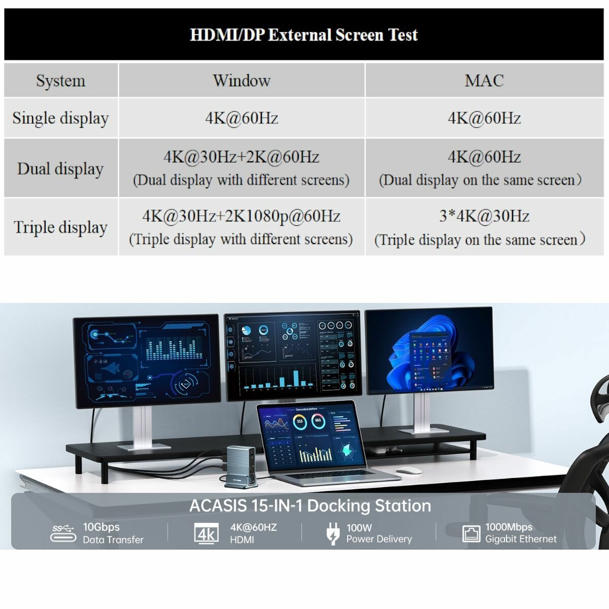 Док-станция Acasis 15 в 1 Type-C для ноутбука USB-C, 4K HDMI, DP 4K@60Гц, 2 x USB3.1 10 Гбит/с, SD / TF, аудио, RJ45 для Mac и Windows (DS-7A15) интересное: