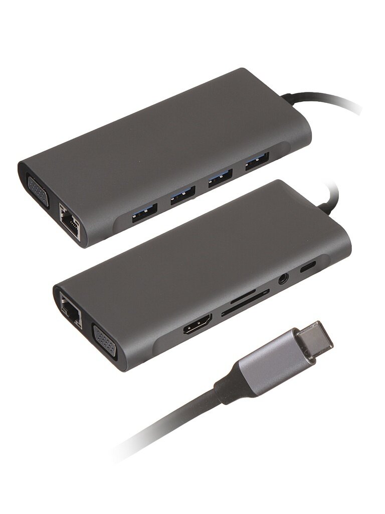 USB концентратор USB Type C 11 в 1,c USB 3.0, HDMI 4K, Ethernet, VGA, Картридер, PD 87 W, jack 3.5