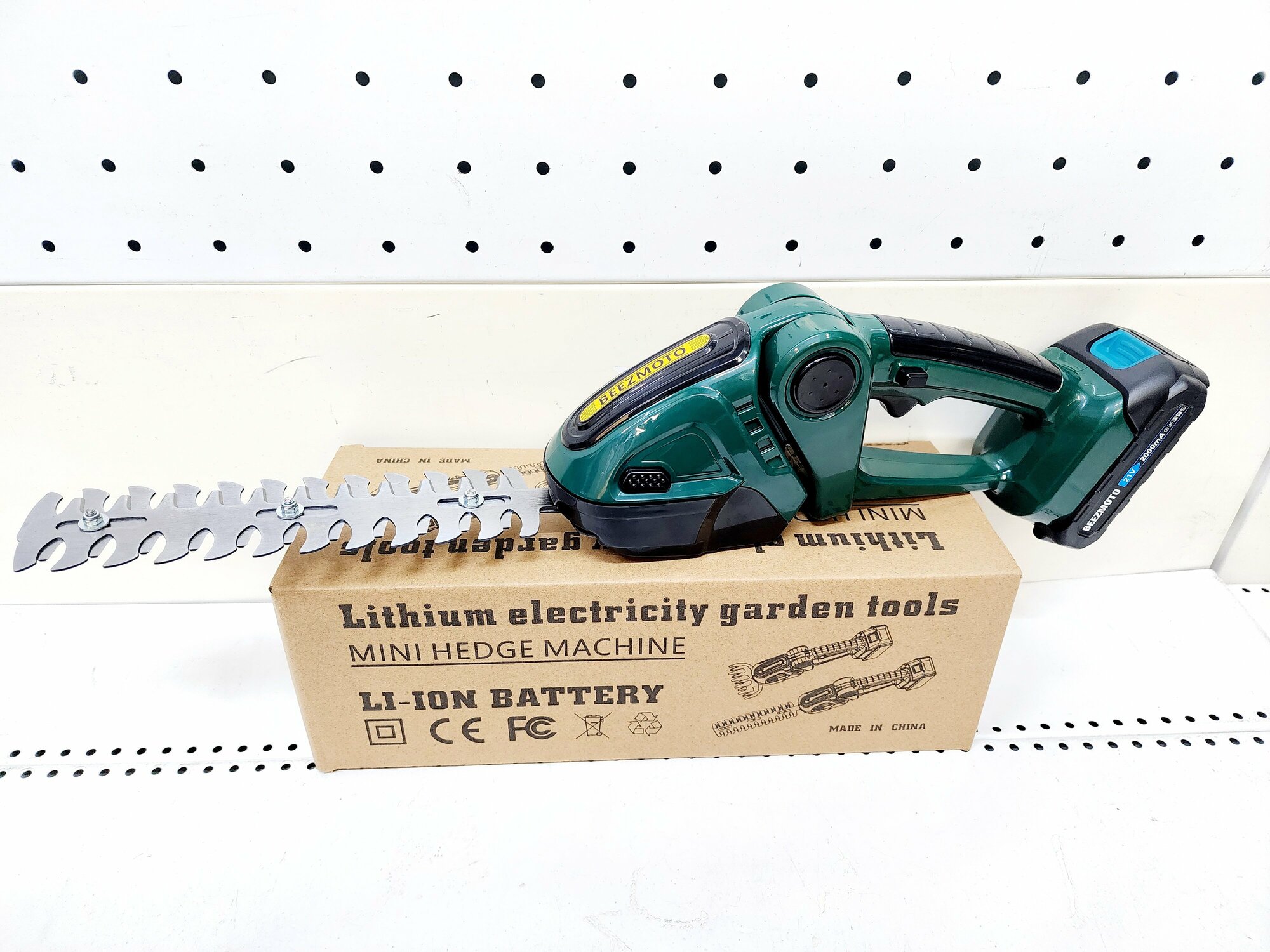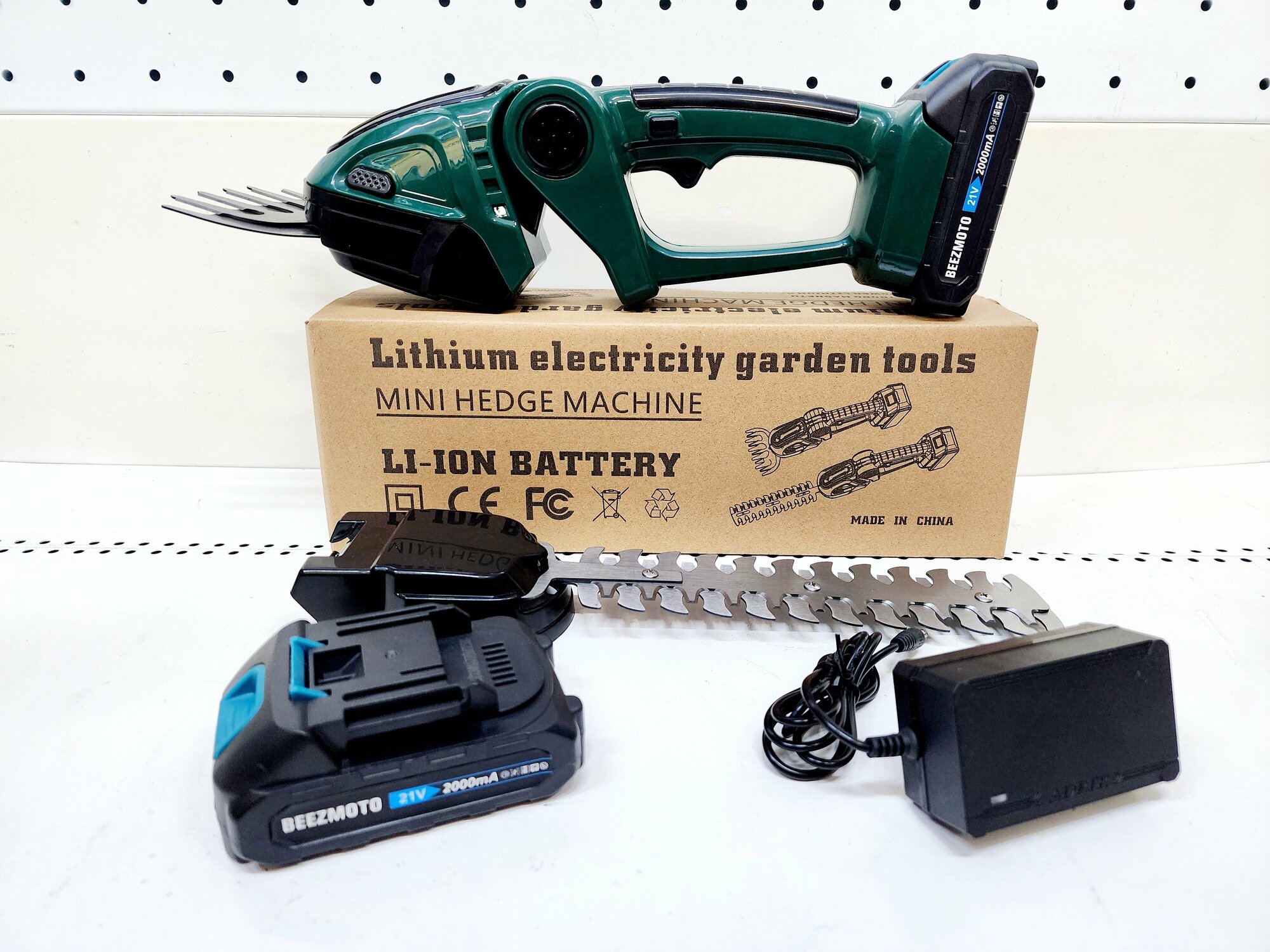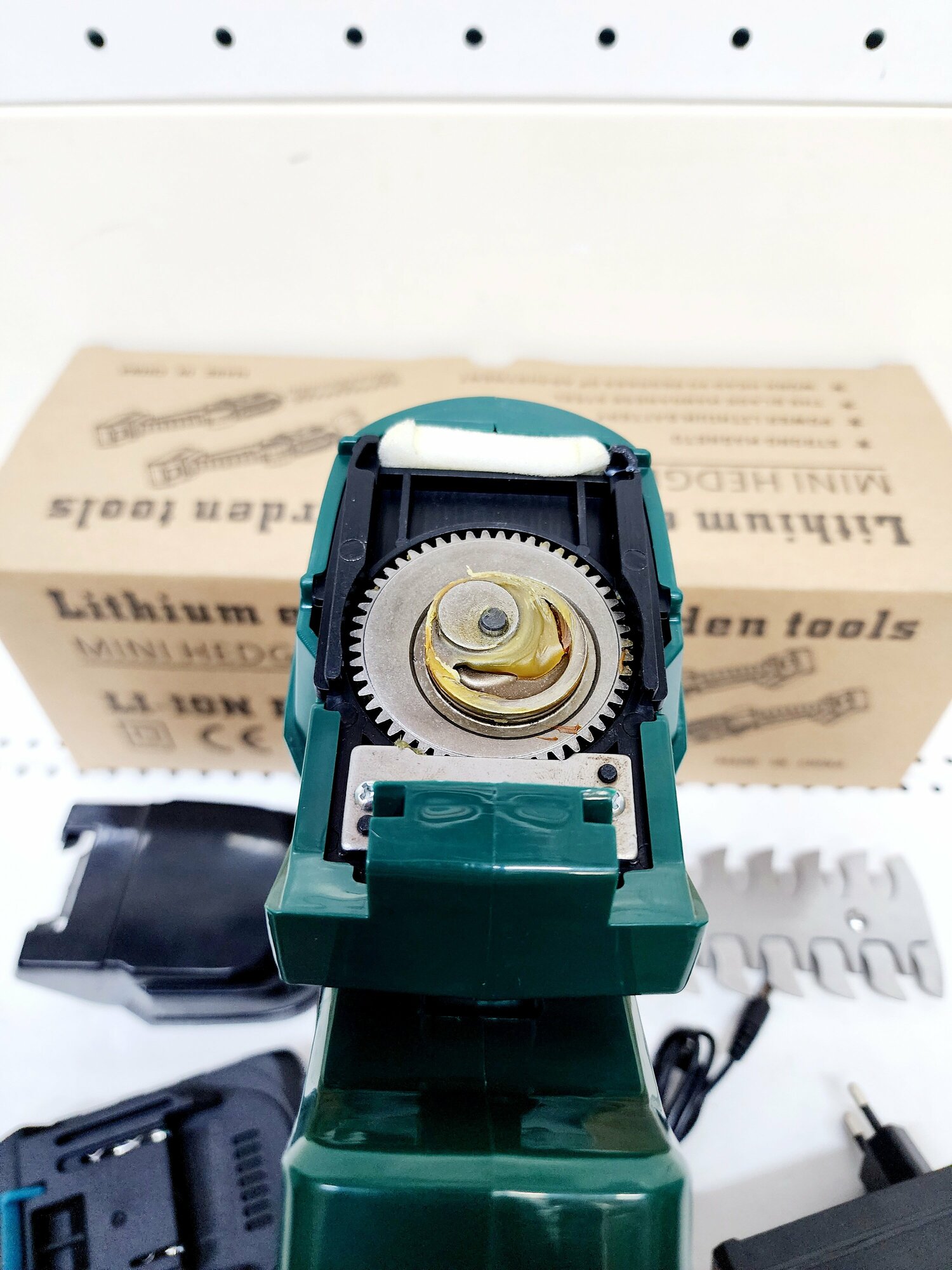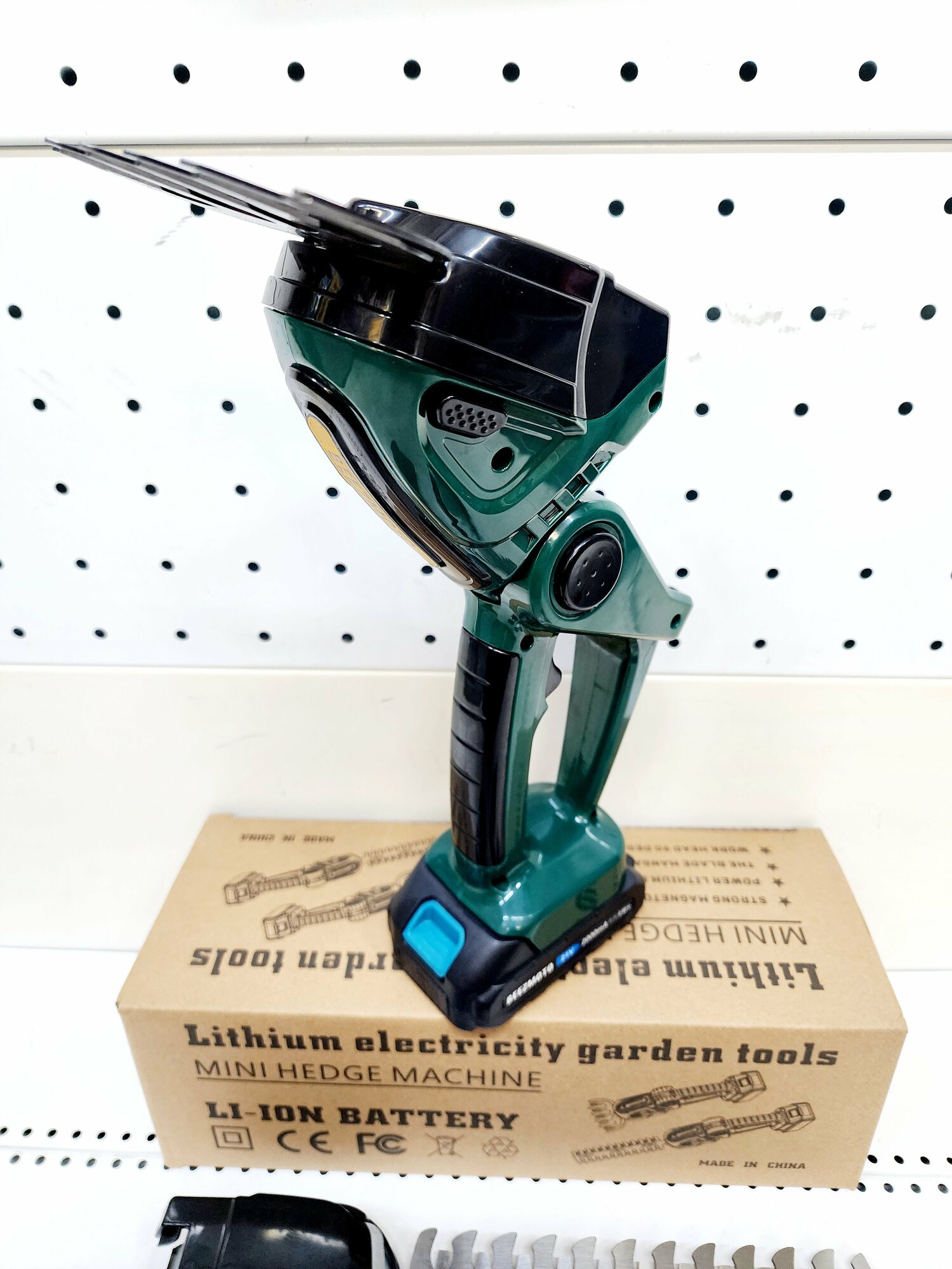 | Комплектация | Аккумуляторные ножницы-кусторез; Аккумулятор 2шт; Насадки 2шт; Зарядное устройство; Коробка |