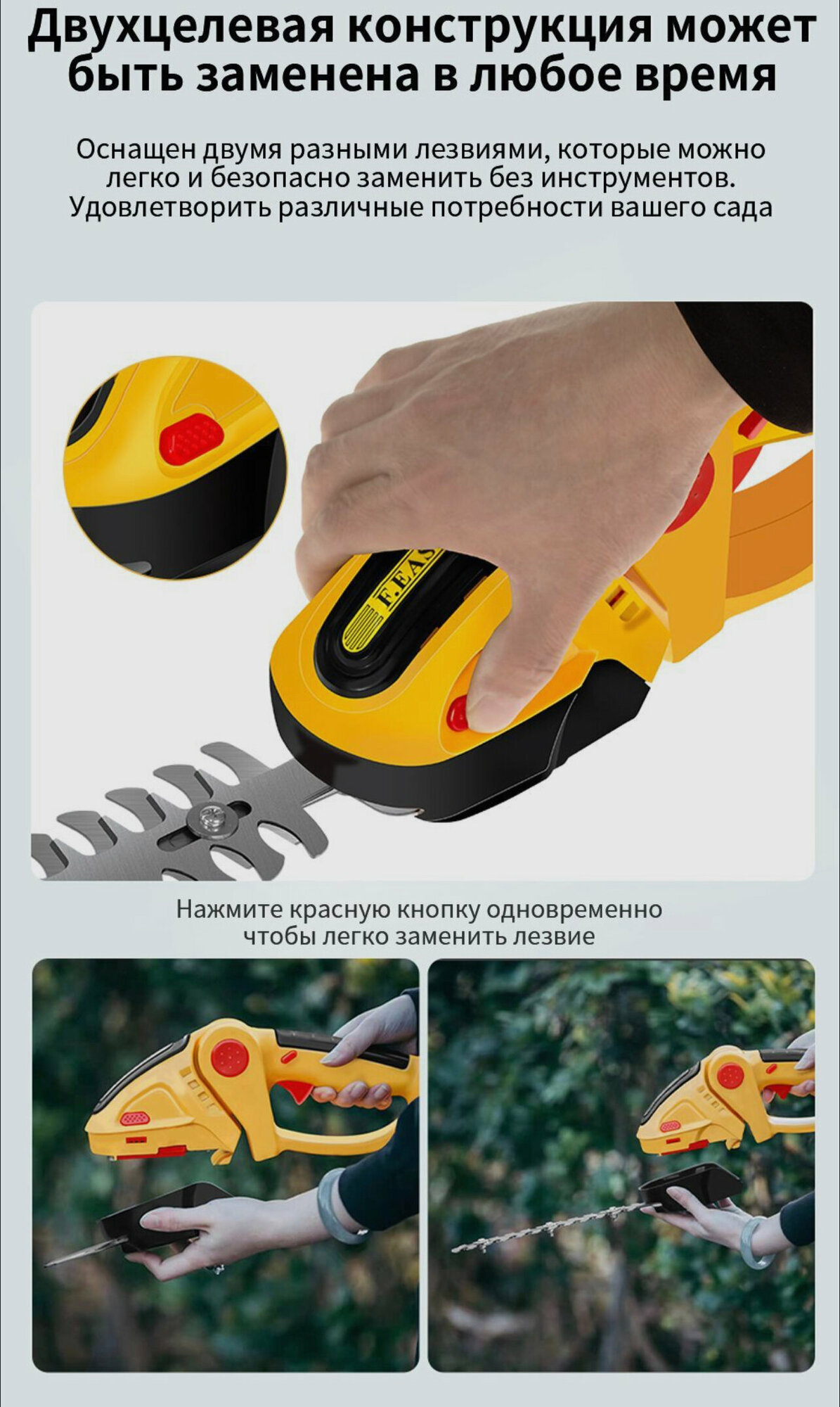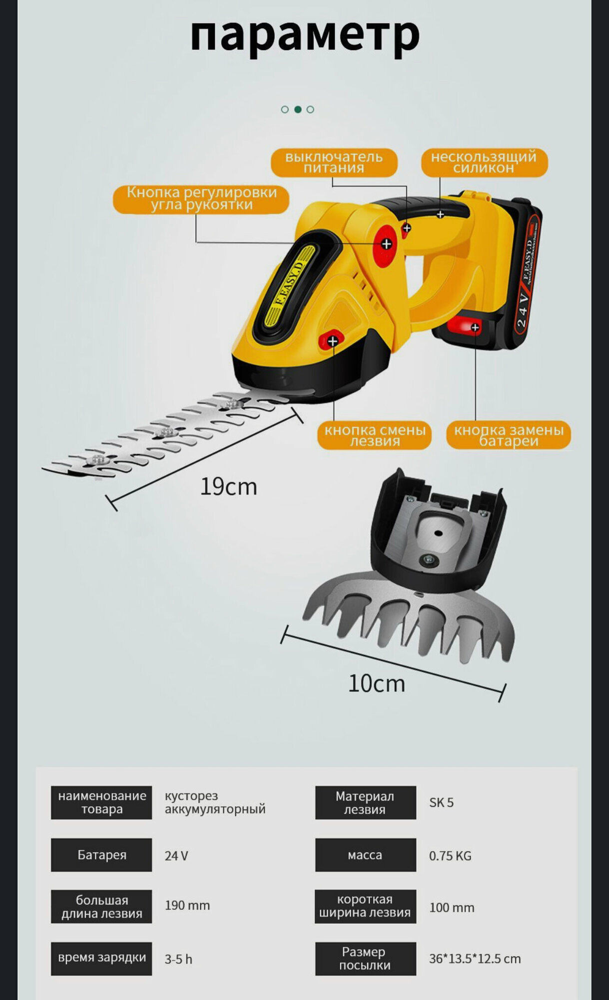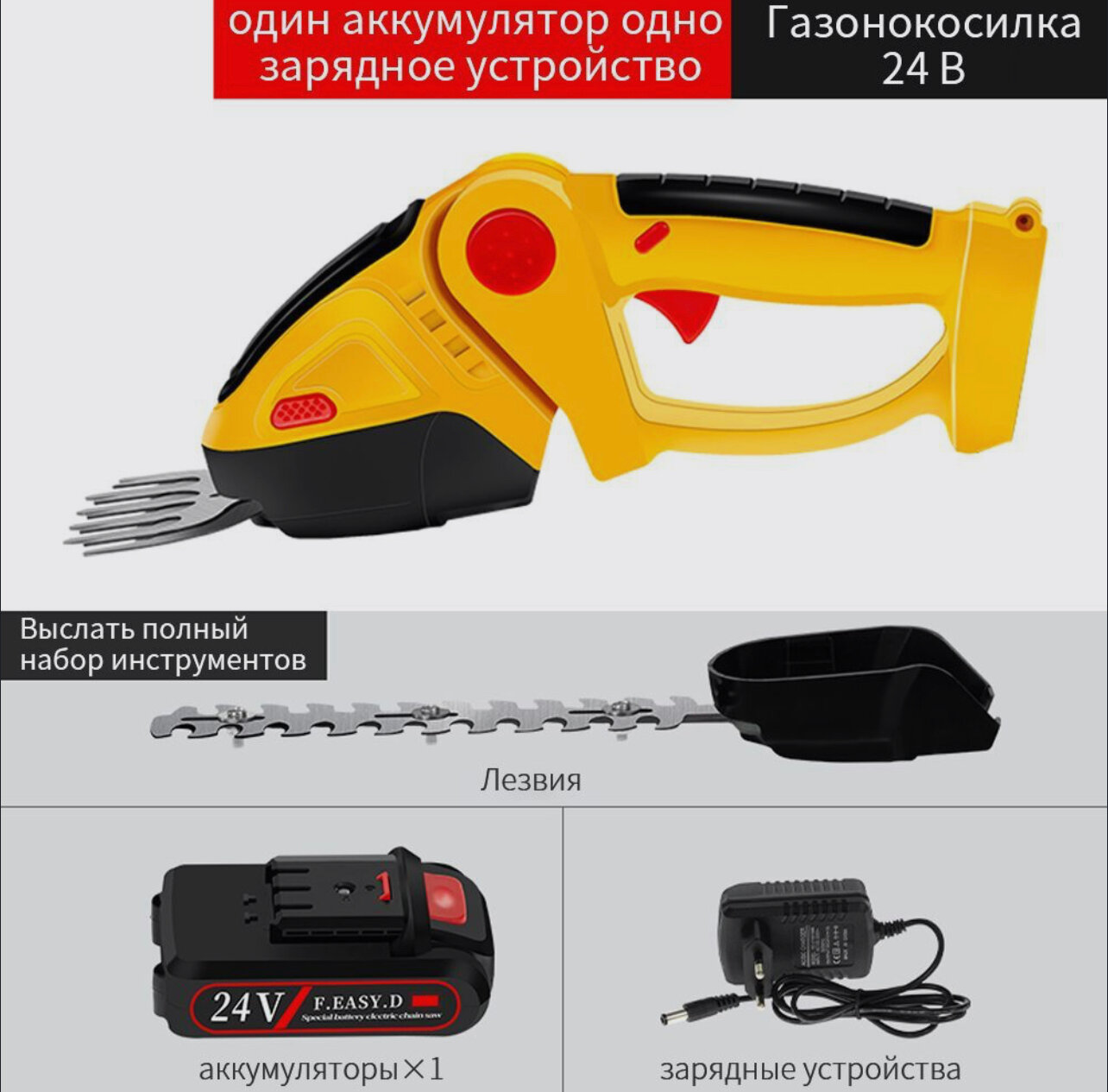 кусторез аккумуляторный 24V триммер электрический кусторез садовый садовые ножницы 2000мАч,400W,1500об/мин,рез 8 мм интересное: