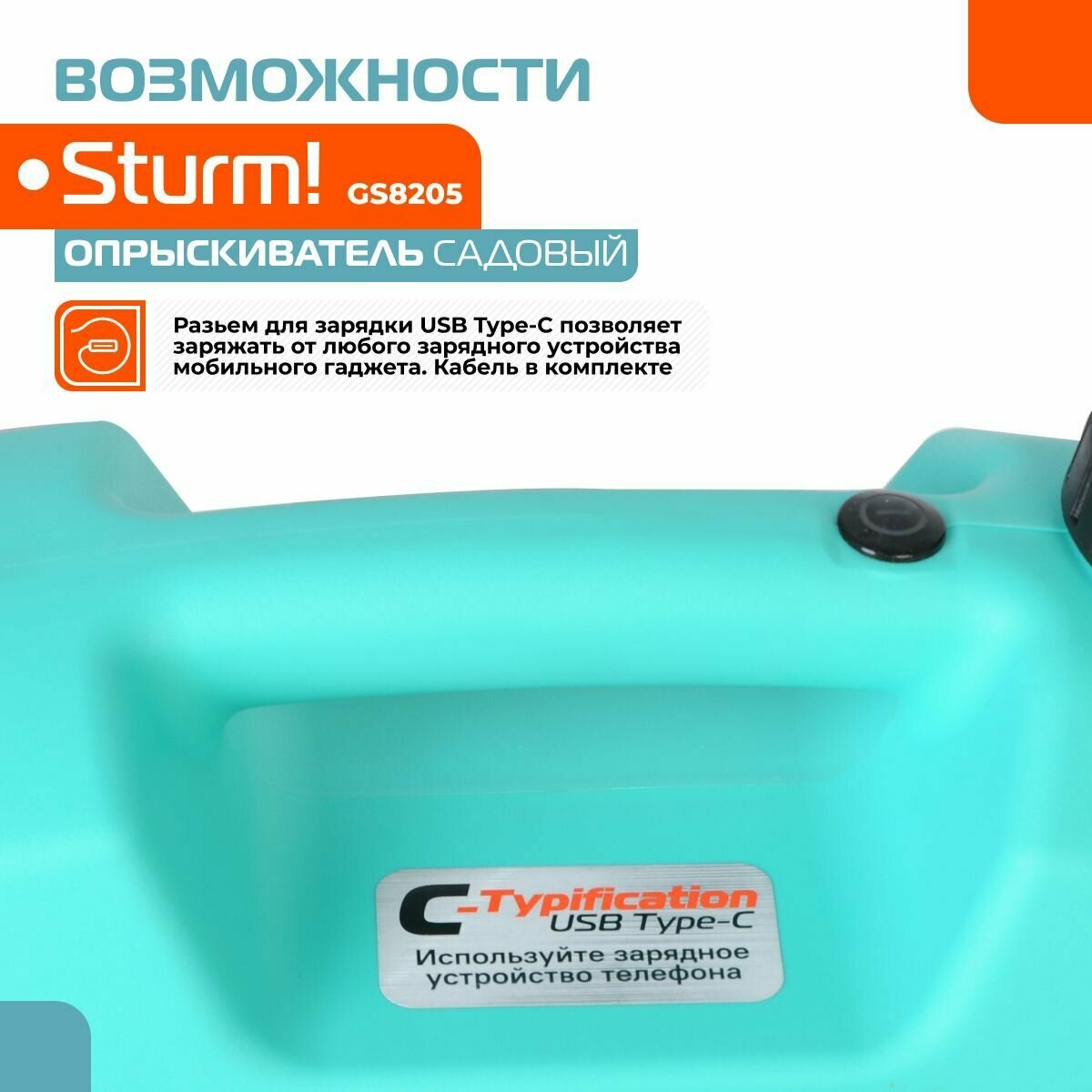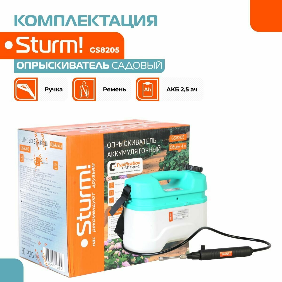Опрыскиватель аккумуляторный Sturm, GS8205 4л, USB TYPE C, 2.5Ач, 1.5 бар