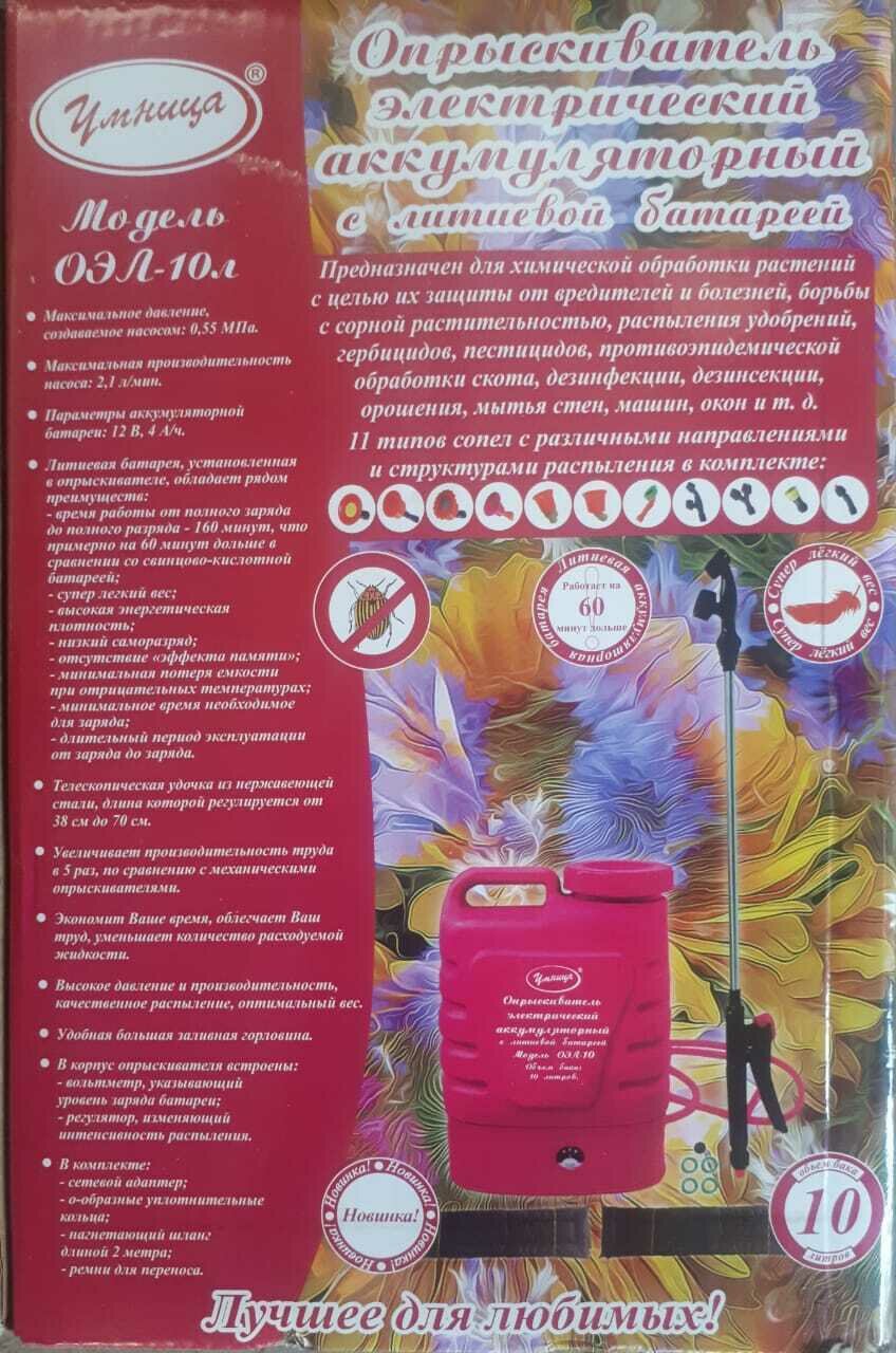 Опрыскиватель аккумуляторный ранцевый Умница ОЭЛ-10л с литиевой батареей и регулятором мощности интересное: