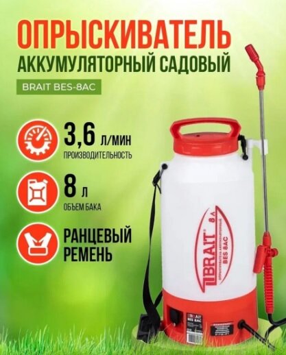 Купить Опрыскиватель аккумуляторный BRAIT BES-8AC, 12В, 1.3 Ач, для растений и помещений