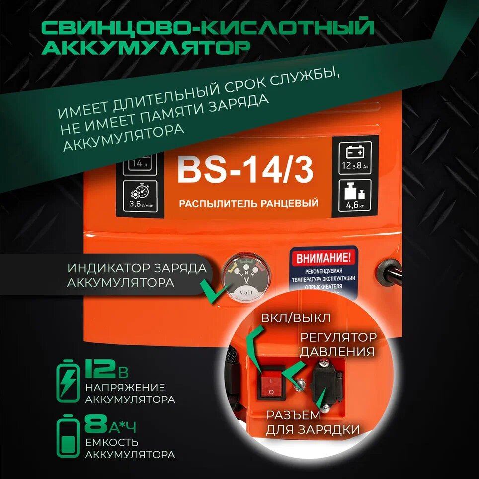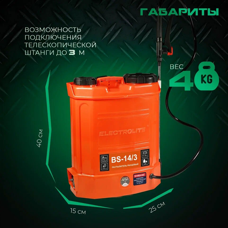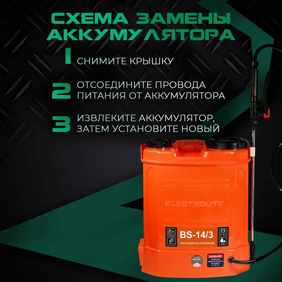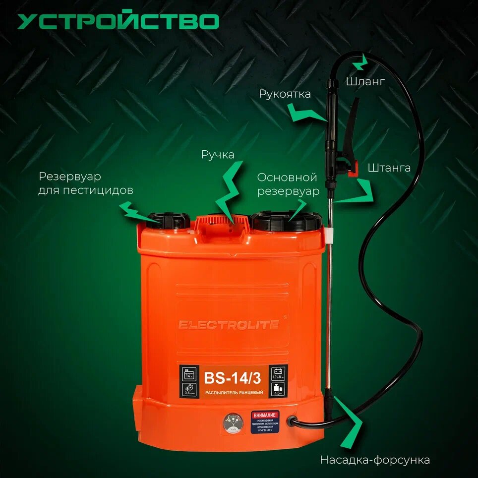 Аккумуляторный опрыскиватель ранцевый ELECTROLITE BS-14/3 14 л интересное:
